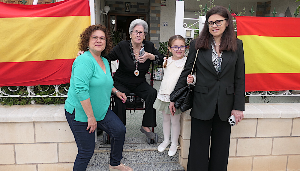 Mercedes, Carmen, Elena e Isa Mari en la calle Martínez Navarro del barrio de Los Dolores durante la celebración de la procesión del Cristo de la Salud el pasado uno de mayo.