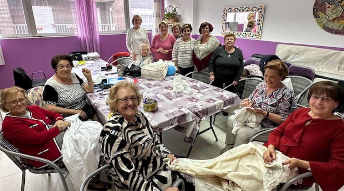 Grupo de mujeres bordadoras en el local social del populoso barrio de Los Dolores