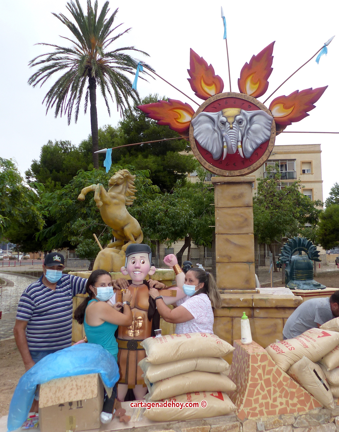 Para 2020, la asociación que tiene como presidente a Manuel Torres Paysal decidió rendir tributo a las Fiestas de Carthagineses y Romanos, con los que establecieron vínculos poco tiempo atrás cuando tropas y legiones desfilaron por el barrio. Sin embargo, llegó la pandemia y las figuras quedaron guardadas en un almacén. Se trató recuperarlas para la noche de las hogueras de San Juan, pero fueron prohibidas por el Ayuntamiento, fijándose entonces como objetivo, y si la situación pandémica lo permitía, prenderla en Carthagineses y Romanos, como finalmente, y a la tercera, será.