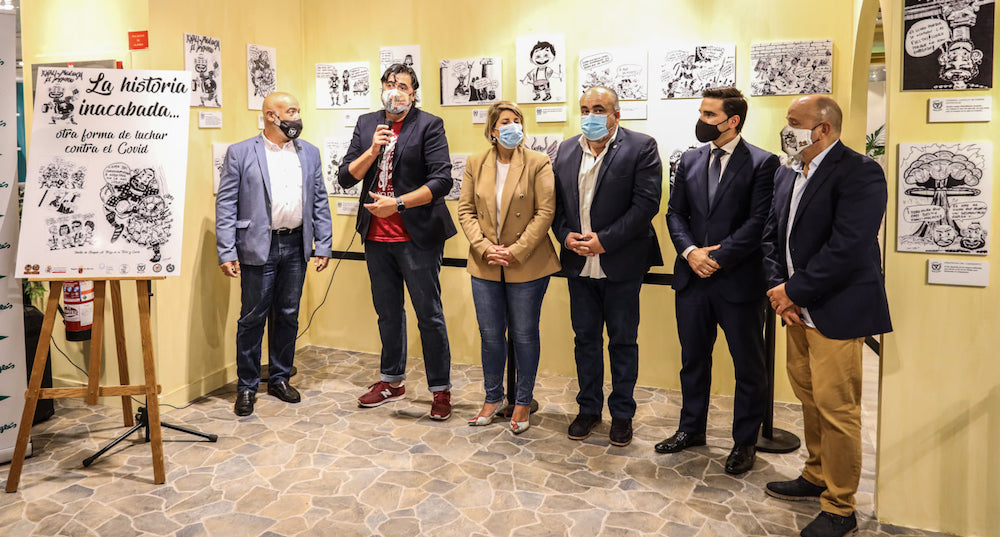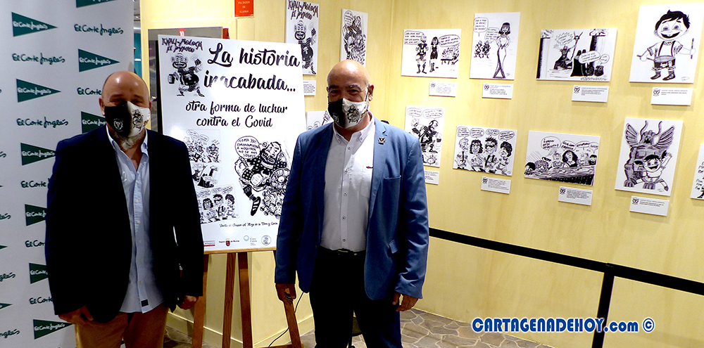 Con estas palabras explica Joaquín Moya el origen de la exposición que acoge El Corte Inglés en su sexta planta con 37 viñetas bajo el título 'La historia inacabada... otra forma de luchar contra el covid', siendo Lorenzo Jerez, quien ha llevado a cabo la organización de esta muestra, el que encendió 'la chispa'. "Fue quien al ver los dibujos planteó que merecían ser expuesto y que el material que había dibujado era suficiente", explica el autor, aclarando que hay viñetas sobre las fiestas y otras más internas de su tropa. Para facilitar la comprensión de todas al visitante se han elaborado una pequeña cartelería que acompaña a cada viñeta.