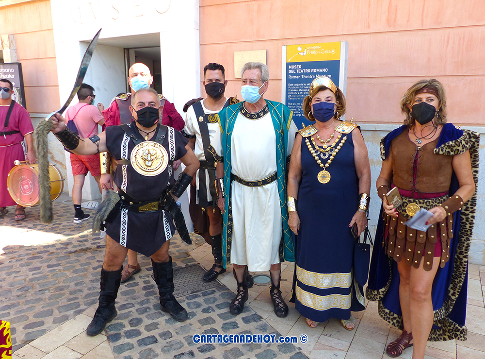 Como se viene haciendo desde que comenzó Carthagineses y Romanos, un grupo de animosos festeros han recorrido las calles de la ciudad para anunciar el (poético) programa de este Annus XXXII, a la vez que han enviado mensajes (Mar Menor) y apuntes bordesicos con humor, como que este año tropas y legiones en el AVE no llegarán, sin olvidar un llamamiento de responsabilidad pandémica en el comportamiento de todos en estos diez días. Los compañeros de comitiva, por su parte, han estado distribuyendo folletos del programa de actos de este año y carteles anunciadores del 'Año de la esperanza'. El grupo ha estado acompañado por banda de trompeta y tambores.