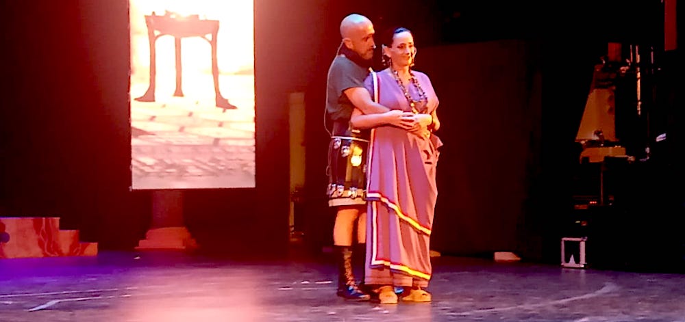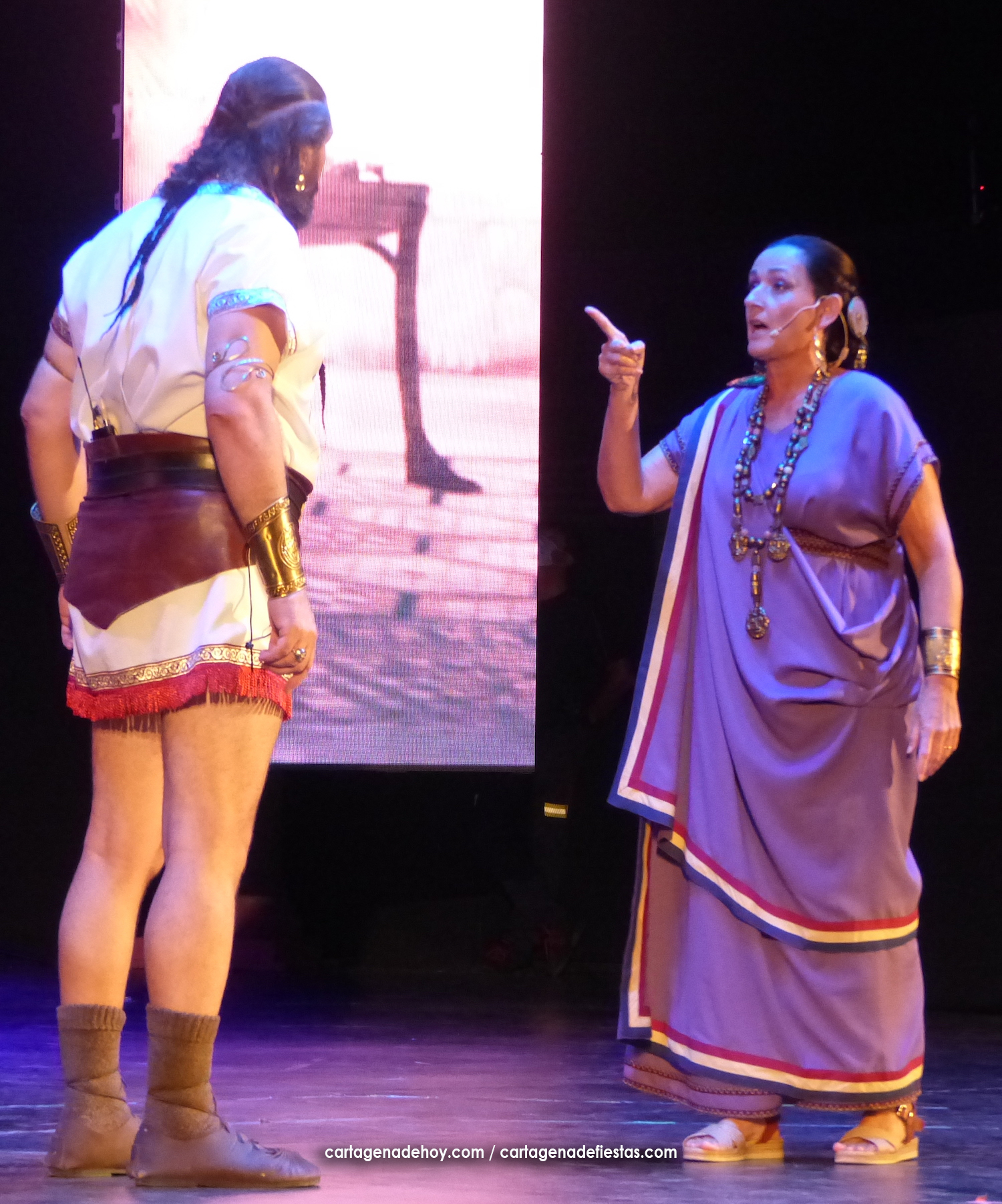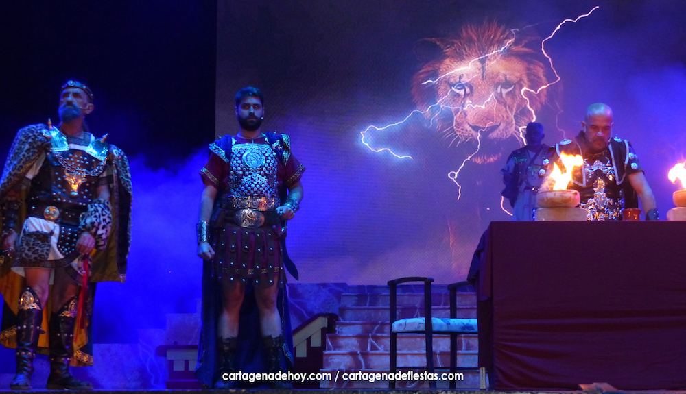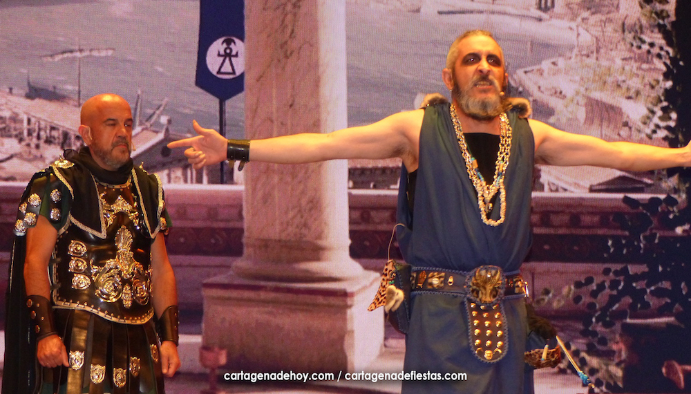 Aníbal (Víctor Nieto), al igual que su predecesor al frente de Qart-Hadast, Asdrúbal, también utilizó la vía de los matrimonios de estado para establecer alianzas con los pueblos íberos. Es el punto de partida de la obra que ha puesto en escena el Consejo Carthaginés bajo la dirección de Jesús Fernández en el escenario del auditorio ‘Paco Martín’ del Parque Torres, que ha registrado, quizás, la mejor entrada desde que comenzó el Annus XXXII de Carthagineses y Romanos, con un público entregado que ha aplaudido reiteradas veces la interpretación de los actores-festeros.