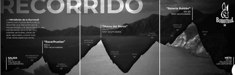 La salida y meta estarán en el Palacio de Deportes de Cartagena. El recorrido conjuga técnica, velocidad y desnivel. Pasará por el alto de ‘Escarihuelas’ en el kilómetro 4, por ’Morra del barco’ en el 10 y por la Batería de Roldán en el 20, para después iniciar la bajada de Las Zetas, con rocas y cambios bruscos de dirección. Colabora la concejalía de Deportes de Cartagena.