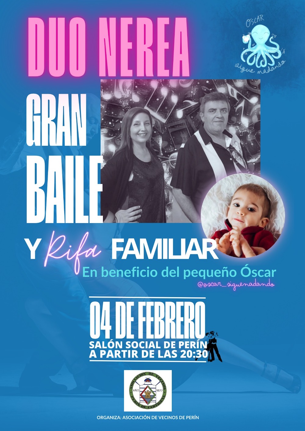 La asociación de vecinos organiza este sábado, a partir de las 20.30 horas en el saló social, un baile con música en directo de Dúo Nerea y una rifa familiar para ayudar al pequeño, de menos de tres años de edad y que sufre una lesión cerebral grave.