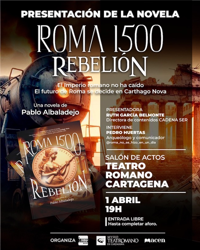 ¿Cómo sería el imperio romano si no hubiera caído y se encontrara en plena Revolución Industrial? La novela ‘ROMA 1500 Rebelión’ explora este mundo alternativo en una aventura alrededor de la ciudad de Carthago Nova. Se trata de un pasado fantástico en el que Roma ha cumplido 1.500 años de existencia, logrado repeler las invasiones bárbaras y conquistar casi todo el mundo conocido. Ahora domina las armas de fuego, se mueve en ferrocarril y está poblada a la vez por millones de obreros que trabajan en sus fábricas del Este y esclavos que cultivan sus plantaciones y extraen riquezas de sus minas del Oeste. Y es precisamente en la principal urbe del Occidente romano donde se desarrolla la trama, una Carthago Nova de fantasía.