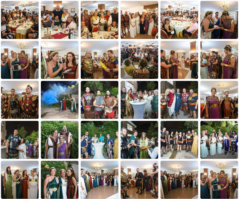 Hace unos años, el encuentro con mesa y mantel de la Bona Dea era exclusivamente femenina (para rememorar la cena de antaño en la que podía beber vino a escondidas, pues lo tenía prohibido), pero en los últimos tiempos se celebra conjuntamente con la del Estado Mayor Romano. Entre los asistentes están los personajes principales del Senado, Escipión y Emilia Paula, tanto en adultos como en infantiles.