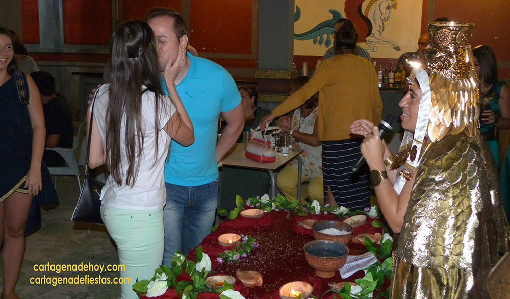 La tropa carthaginesa ha confeccionado un programa que tiene como epicentro de las actividades su templo del campamento de Carthagineses y Romanos, donde llevará a cabo el tradicional concurso de cabezones, imposición de joyas, armas y anillos, comidas de convivencia, bodas al rito púnico (foto adjunta), juegos infantiles y, entre otros, la noche del augurio y un concierto de música.