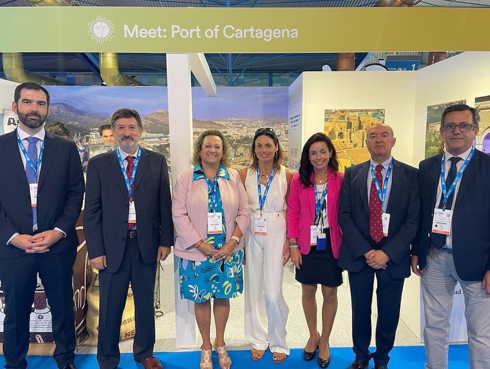 La Autoridad Portuaria de Cartagena, con su presidenta, Yolanda Muñoz, al frente, y una representación de las Fiestas de Carthagineses y Romanos han estado esta semana en el ‘Seatrade Cruise Med’, que durante dos jornadas ha reunido a compañías navieras más importantes, touroperadores, agentes de viajes, otros puertos de España y proveedores de servicios en el Palacio de Ferias y Congresos de la ciudad malagueña.
