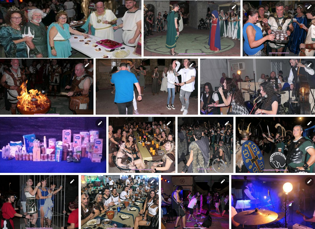 Cerca de este templo está el de Baal-Hammón, donde se elaboró una sabrosa queimada tras el conjuro pertinente y el cántico final ‘baalhamonero’. Se ofreció después a todos los presentes junto a ricos trozos de bizcocho. En el recinto no faltó el baile de la ‘Danza lobetana’, al igual que lo presenciamos en el cuartel del Gens Numisius, donde se elaboraron los tradicionales huevos fritos con chorizos para ofrecer a festeros y visitantes. Seguimos con los romanos y sus manjares, lo que nos llevó a un riquísimo caldo con pelotas de Ara Pacis.