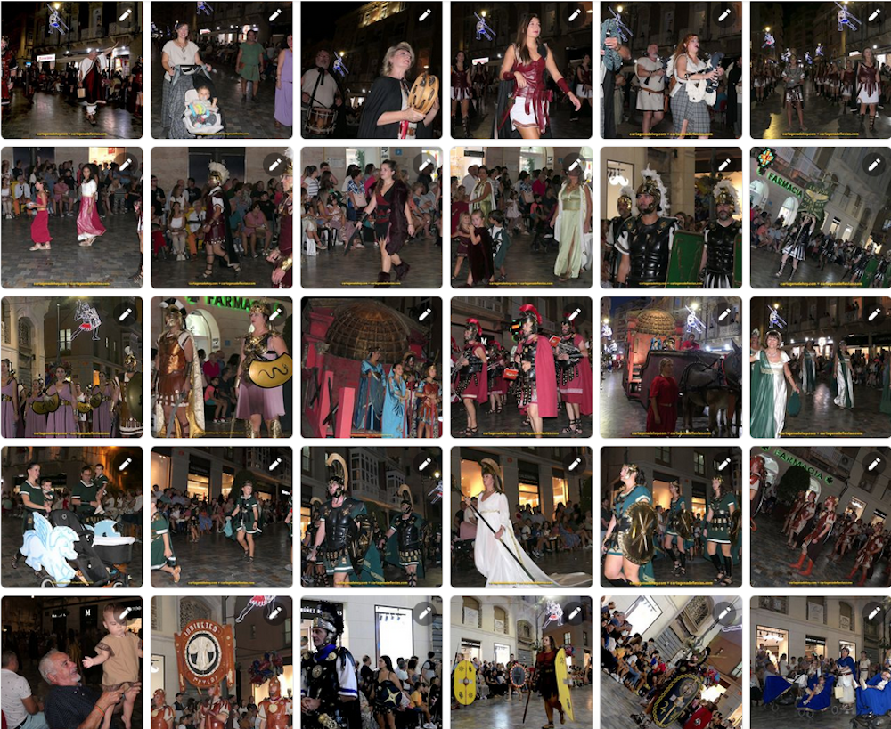 Aunque por separado, tanto púnicos como romanos ya han tenido sus marchas por la ciudad estos días atrás, había mucha ilusión por el desfile general de hoy, en el que ambos bandos se unen para mostrar al gran público (en cantidad difícil de calcular) sus mejores galas en el lucimiento de sus vestuarios y armamento de época, junto a otros elementos de cada tropa y legión, todo ello aderezado por espectáculos que enriquecían la visión de espectadores de todas las edades.