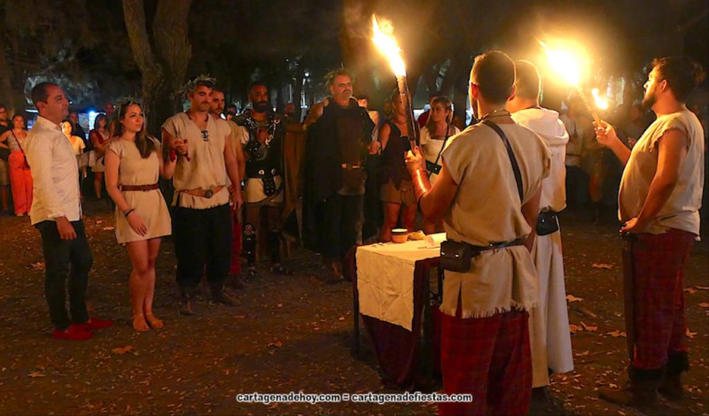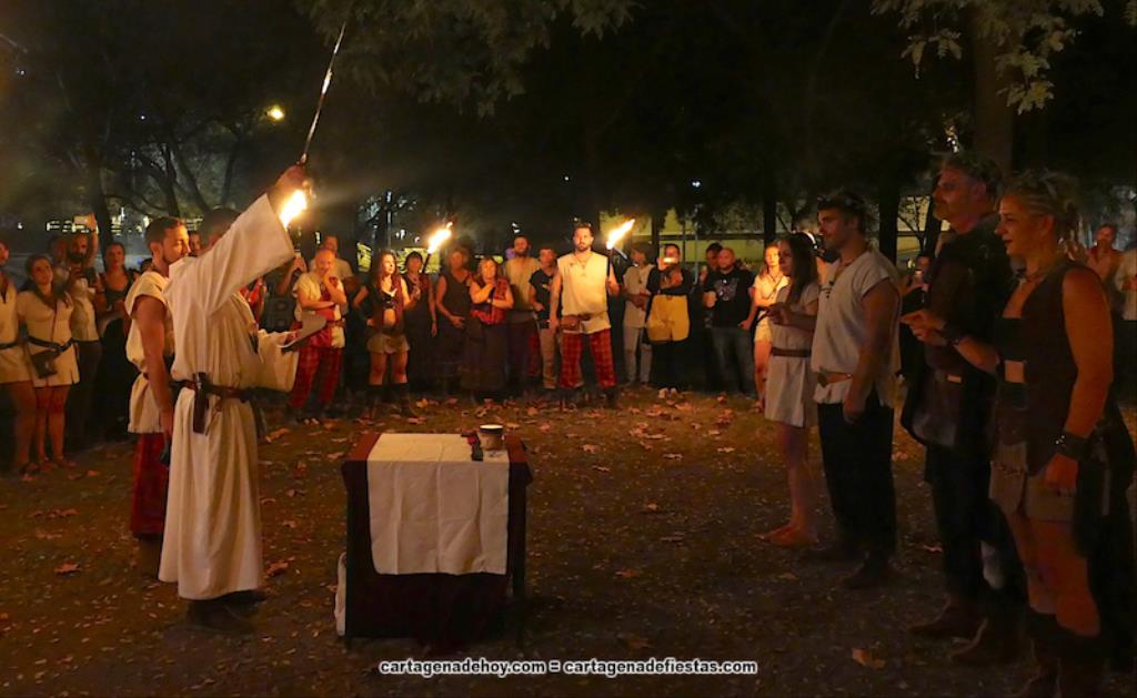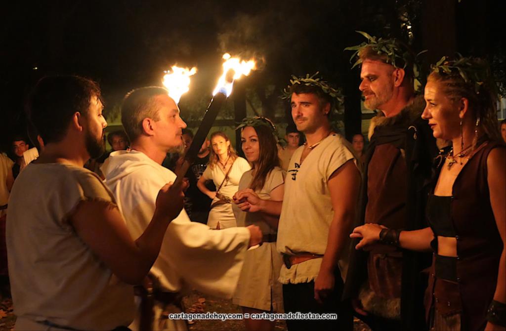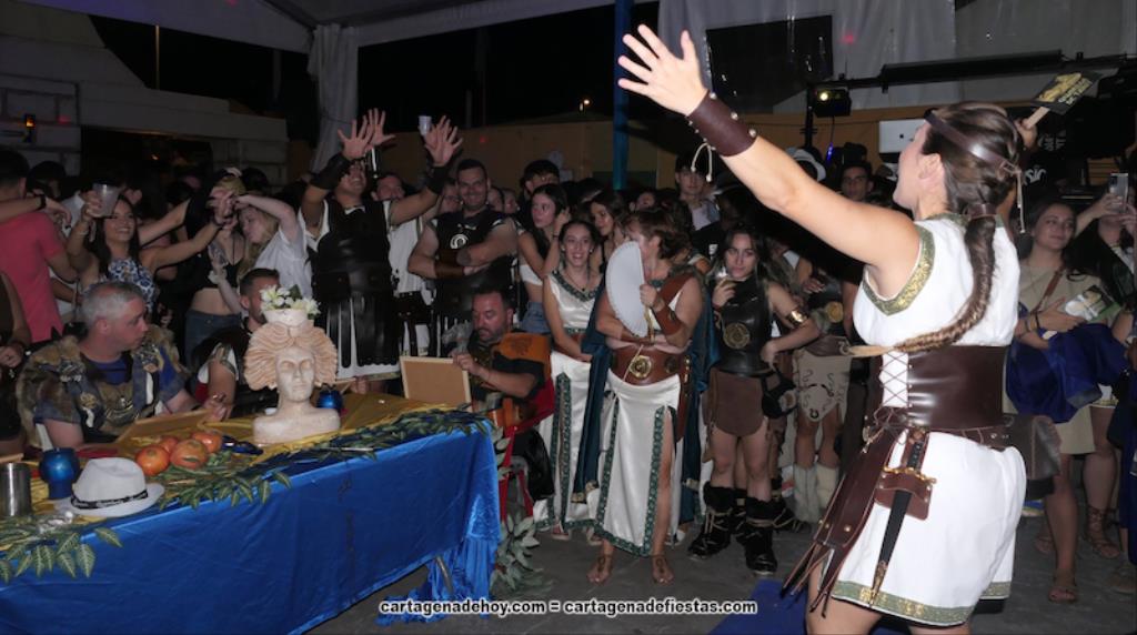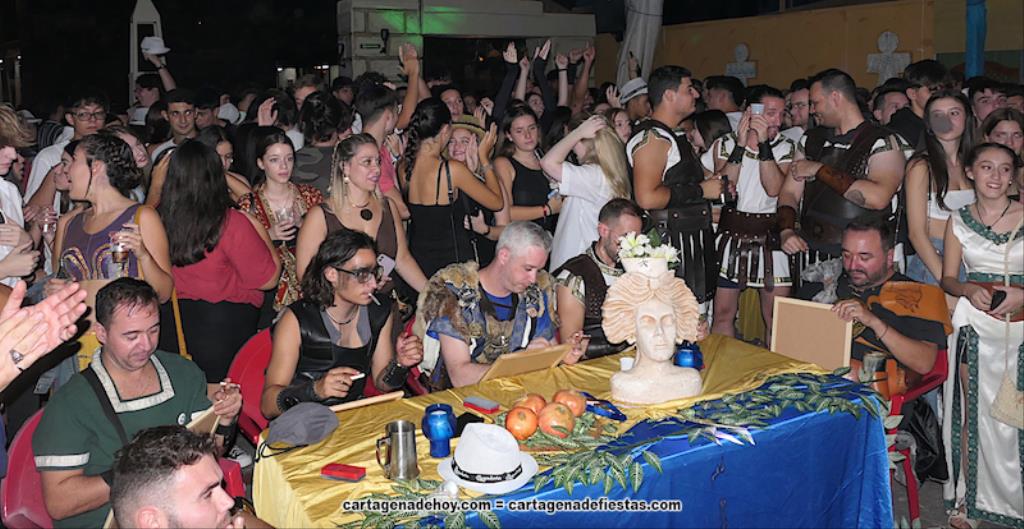 El campamento de Carthagineses y Romanos acogió anteanoche una impresionante presencia de gente, pese a lo que algunas tropas y legiones encontraron huecos para celebrar las bodas celtas, el asalto de los íberos a los hoplitas por ‘la cabra díos’, los asaltos, un doble cumpleaños numisius y el concurso de miss (con éxito lusitano) en Tanit, donde también ofrecieron agua de Valencia y dulces flores a los visitantes. Además, Onda Cartagena siguió con sus ‘programas guerreros’ entrevistas y música en directo.