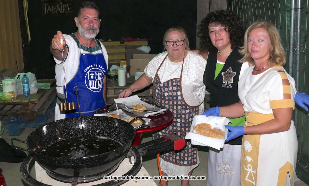 En el superocupado recinto de Guardia de Tanit la actividad fue intensa, destacando el concurso de Miss Tanit, que reunió a 15 aspirantes, venciendo la triplta formada por Sara, Carmen y Nerea de la tropa Caballería Lusitana. Además, este grupo carthaginés ofreció degustaciones del agua de Valencia elaborado por Jaime y de dulces flores recién hechas. Riquísimas ambas propuestas.