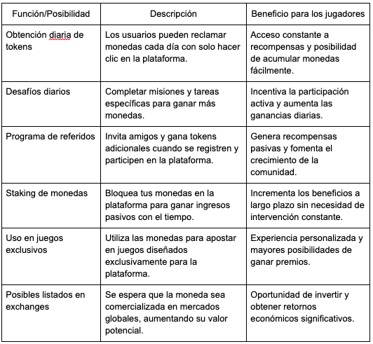 • Inversión anticipada: si tienes visión de futuro, adquirir monedas mientras su valor está en crecimiento puede ser una estrategia rentable. Una vez que estas se comercialicen en exchanges globales, su valor podría multiplicarse significativamente.