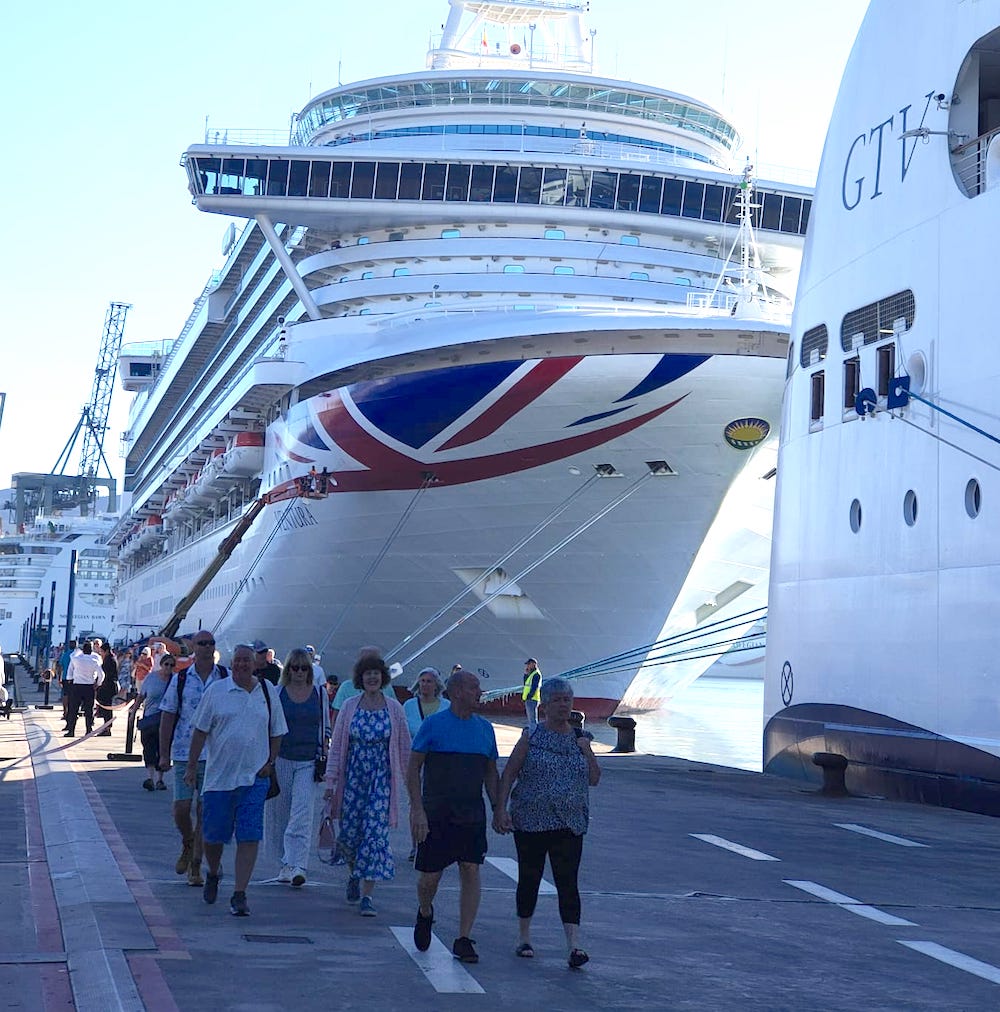 Esta semana es histórica en cuando a la llegada de grandes buques con turistas a la bahía de Cartagena con cinco llegadas el domingo y tres el lunes. Por supuesto, no podían faltar para recibir a los pasajeros a los fieles festeros de la tropa de Qart-Hadast, que se esfuerzan durante todo el año para que las Fiestas de Carthagineses y Romanos se divulguen por todo el mundo.