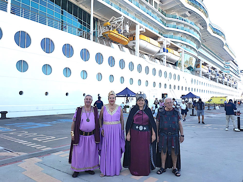 La presencia de festeros en el recibimiento de los cruceros forma parte de las iniciativas de la vocalía de relaciones externas de la Federación de Tropas y Legiones.