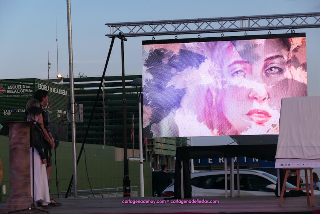 En la explanada del puerto próxima a la terminal de cruceros ‘Juan Sebastián Elcano’, y con presencia de representantes de varios partidos políticos (PP, Sí Cartagena y MC, que hayamos visto), entre los que figuraba la alcaldesa, se ha dado a conocer la obra de Clara Ledo, una joven cartagenera de 32 años de edad que ha roto moldes en la concepción de la imagen que representa a las históricas fiestas, pues desaparece el espíritu bélico, que no el valor.