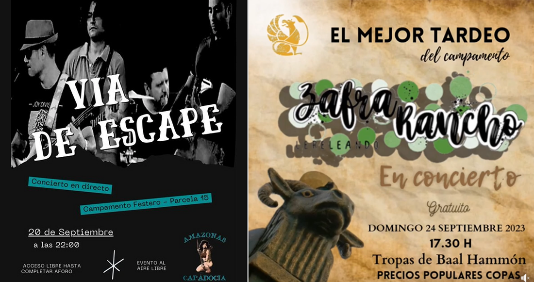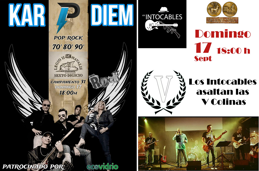 En cuanto a grupos musicales, este próximo domingo, por la tarde, 'Kar-P-Diem' estará en el campamento de legio II Navalis y 'Los intocables' actuarán en V Colinas. El miércoles 20 será 'Vía de escape' la banda que ofrezca su música en la noche de Amazonas, mientras que 'Zafarrancho' actuará en la tarde del domingo 24 en Tropas de Baal-Hammon. Noveda será ell 'Glitter Party+Show Drag' de Ángel Fansy que ofrecerá Caballería Númica en la madrugada del sábado al dommingo de esta semana.