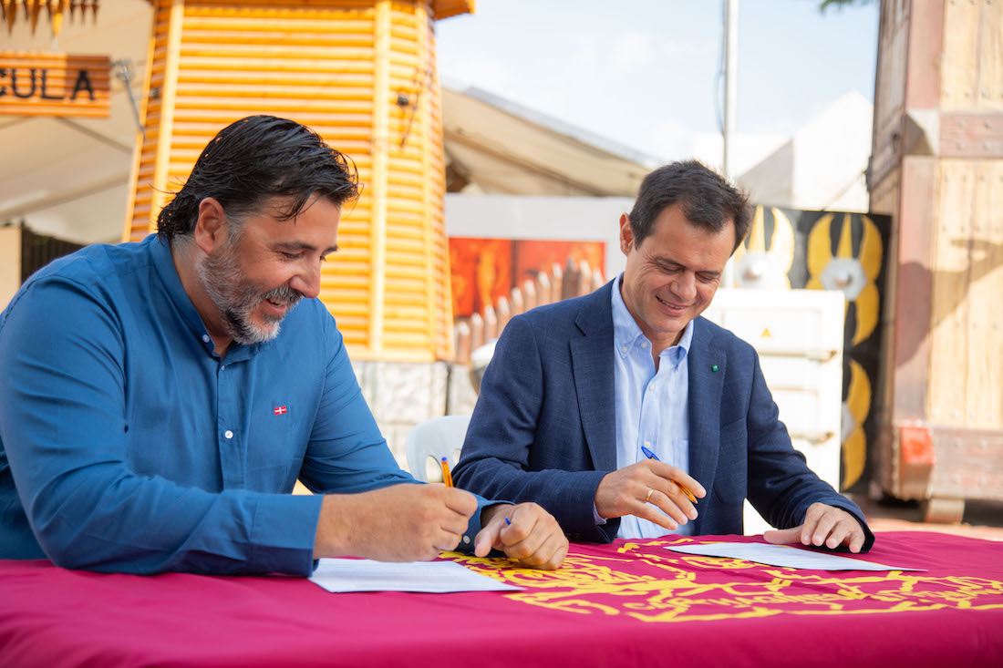 El director del complejo industrial de Repsol en Cartagena, Antonio Mestre, y el presidente de la Federación de Tropas y Legiones, José Antonio Meca, han firmado el acuerdo de patrocinio con el que el complejo industrial respalda, un año más, las fiestas. Mestre destaca el esfuerzo que se hace cada año por “recrear la historia y escenificar el pasado de la ciudad” y ha recordado que esta colaboración se mantiene desde hace más de una década.