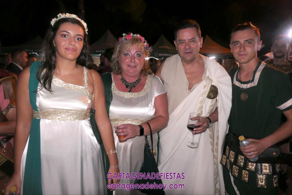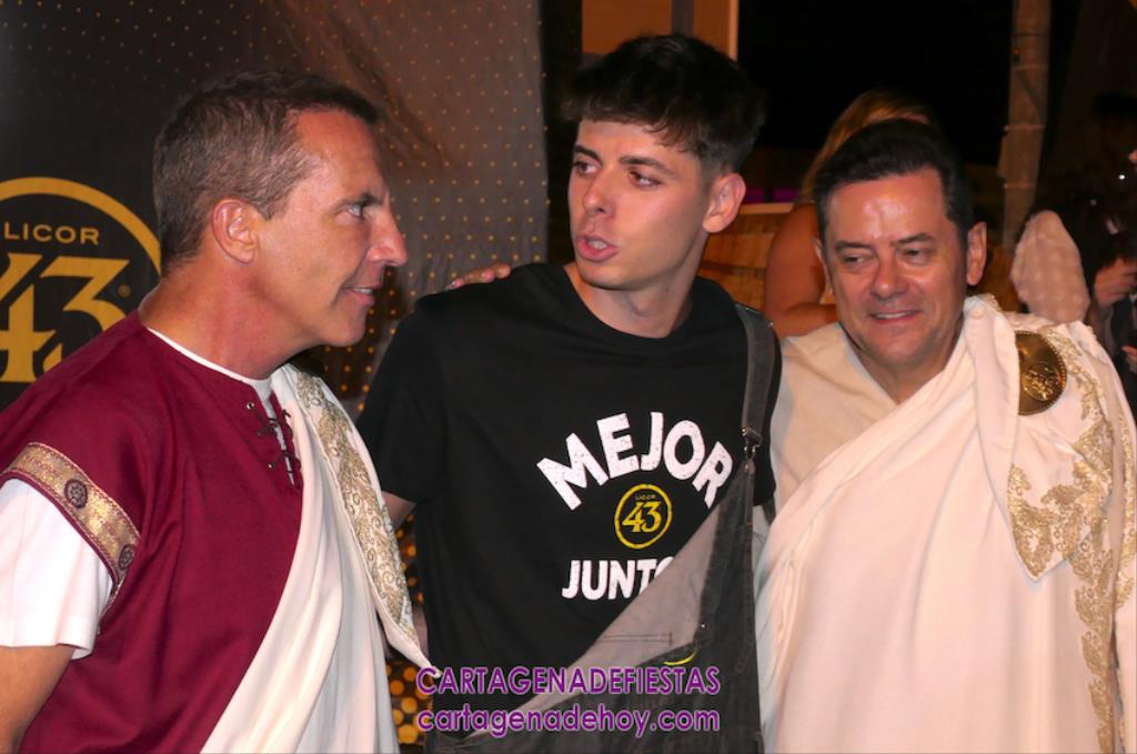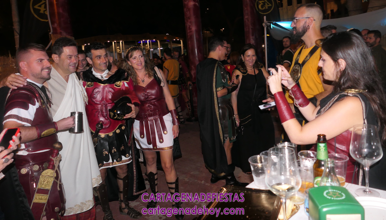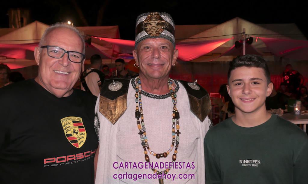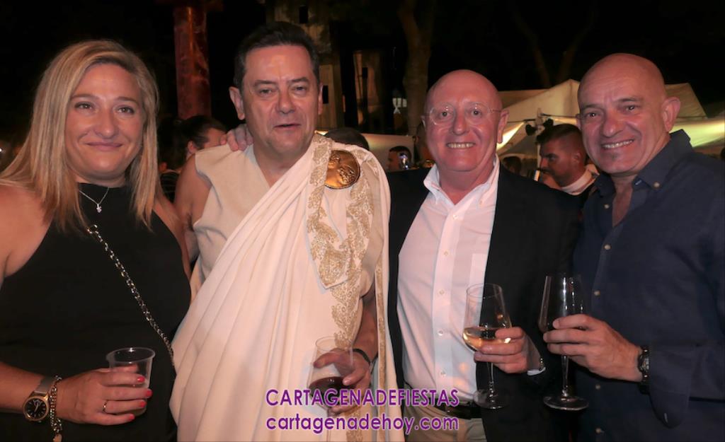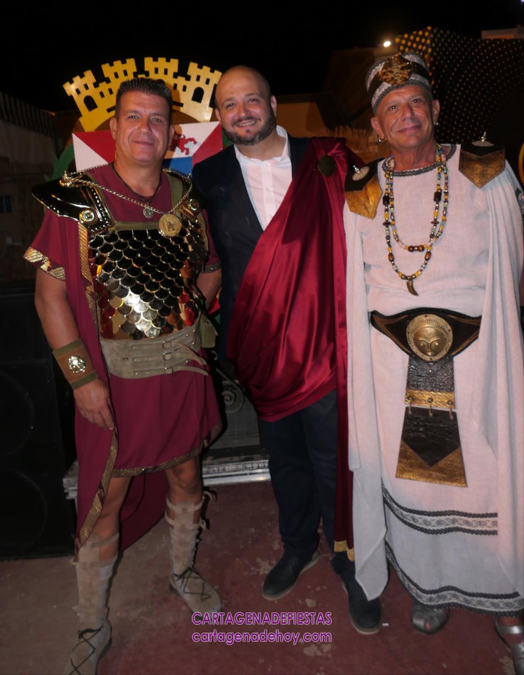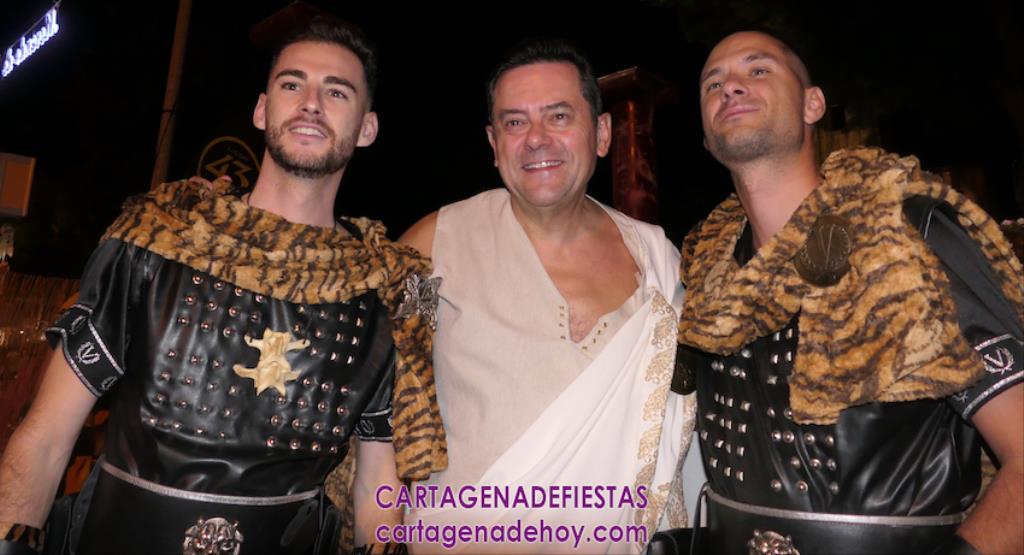 Entre los que estuvieron dentro de los treinta mil metros cuadrados de ciudadela festera figuraban los pregoneros Tomás Roncero y Cristóbal Soria, quienes no ponía pegas a ser fotografiados con decenas de personas. Por cierto, entre las personas con las que posaron estaba Fina, de la Legión de Sagunto, que fue quien les elaboró las túnicas que lucieron en el pregón y en el campamento. En el área de protocolo, además de los anfitriones, también estuvieron ediles de los diferentes partidos políticos con representación municipal, el delegado del gobierno, la alcadesa y, entre otros, representantes del Carnaval de Cartagena y de Modernistas de Cartagena de Levante.