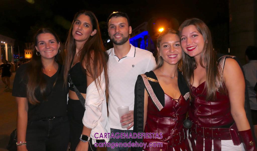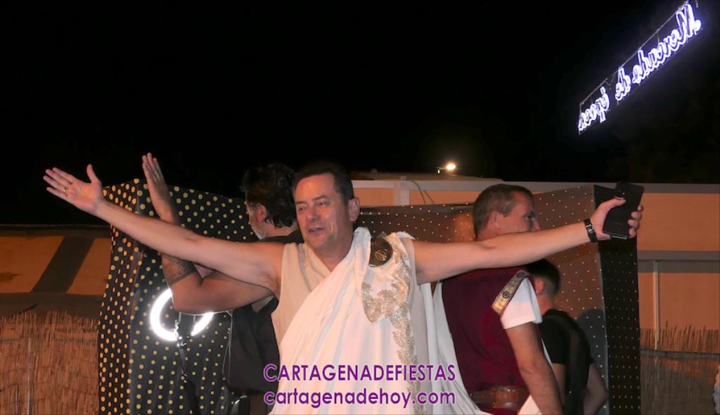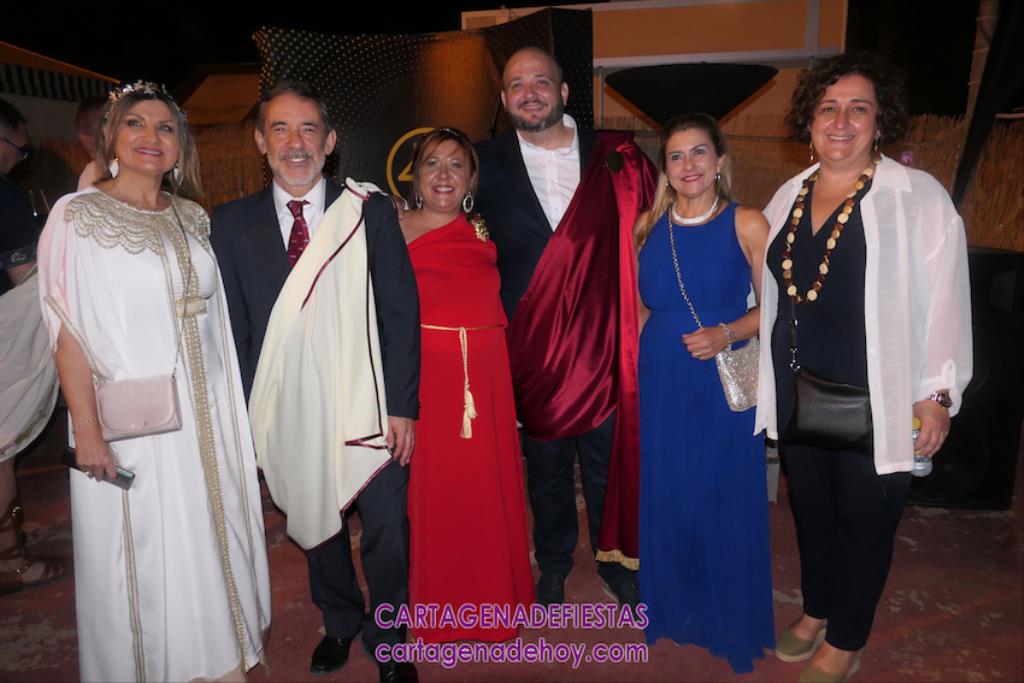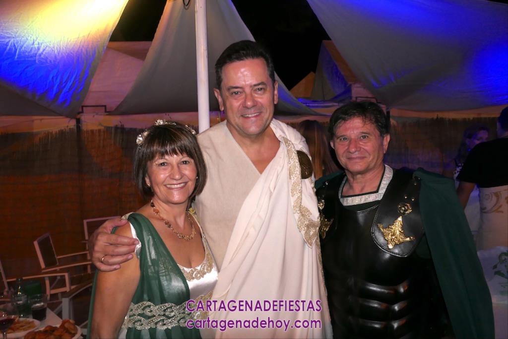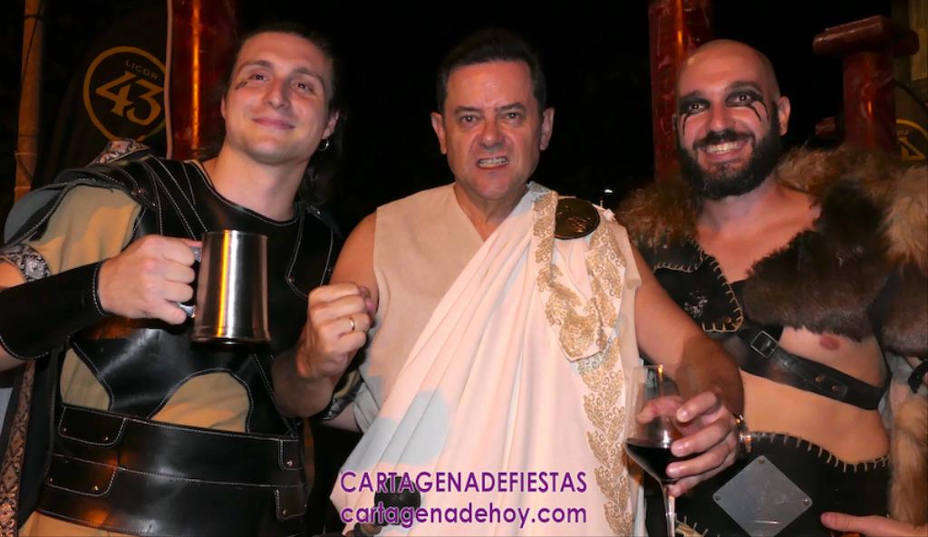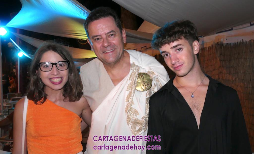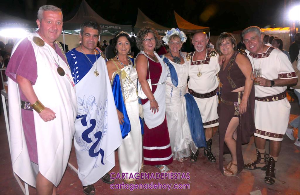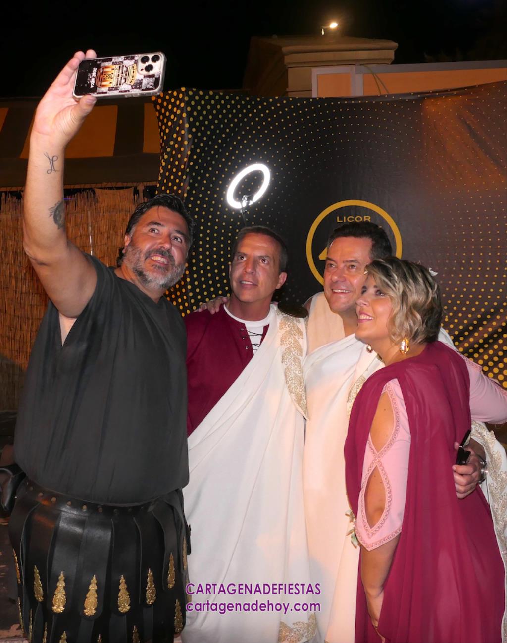 Entre los que estuvieron dentro de los treinta mil metros cuadrados de ciudadela festera figuraban los pregoneros Tomás Roncero y Cristóbal Soria, quienes no ponía pegas a ser fotografiados con decenas de personas. Por cierto, entre las personas con las que posaron estaba Fina, de la Legión de Sagunto, que fue quien les elaboró las túnicas que lucieron en el pregón y en el campamento. En el área de protocolo, además de los anfitriones, también estuvieron ediles de los diferentes partidos políticos con representación municipal, el delegado del gobierno, la alcadesa y, entre otros, representantes del Carnaval de Cartagena y de Modernistas de Cartagena de Levante.