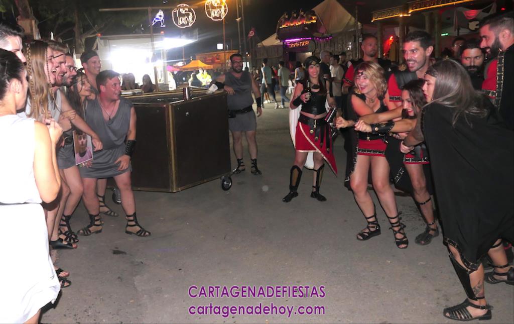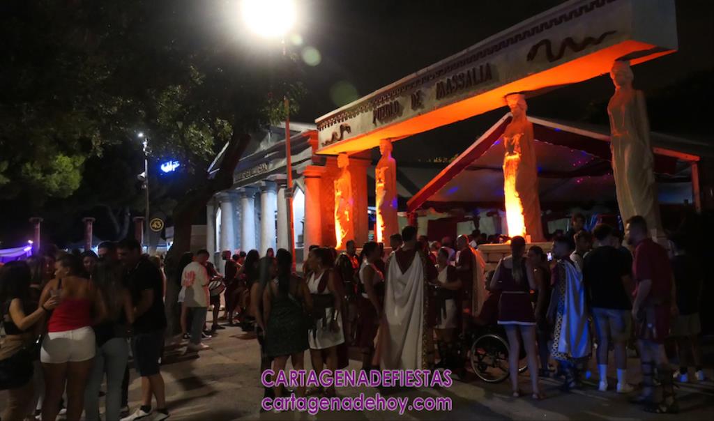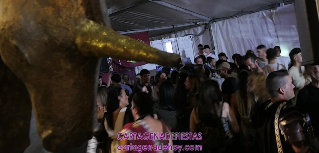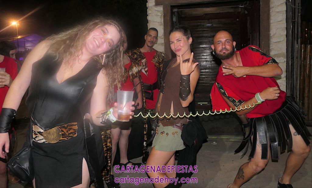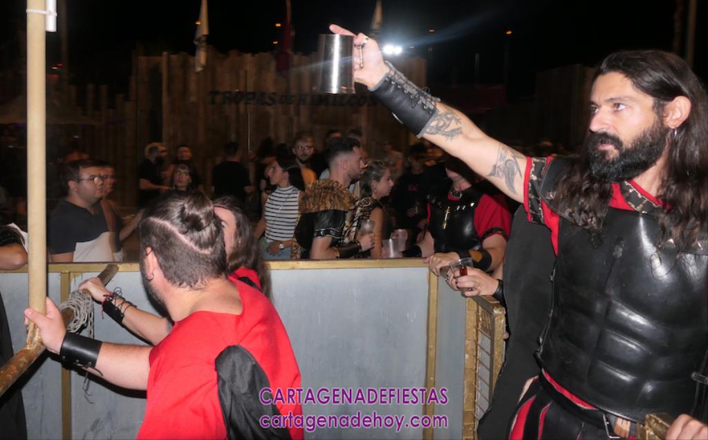 Tras la marcha desde el Palacio Consistorial, se llevó a cabo el corte de cinta de la gran aldea, que recibió a mucha gente. Tropas y Legiones han multiplicado a sus alistados, pero es que también ha crecido la cifra de jóvenes no festeros que eligieron el campamento para el viernes noche. Es más, dentro del gran volumen de personas, se veían muchos más sin vestuario de época que los que lo lucían. Algunos recintos estaban a tope e, incluso, nos llamó la atención ver a dos vigilantes privados en la puerta de entrada del recinto de Uxama.
