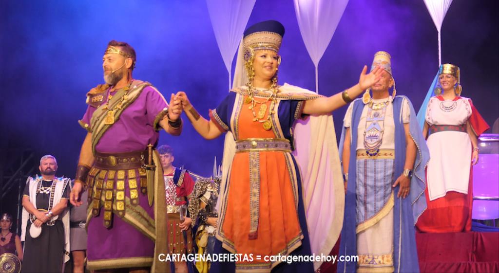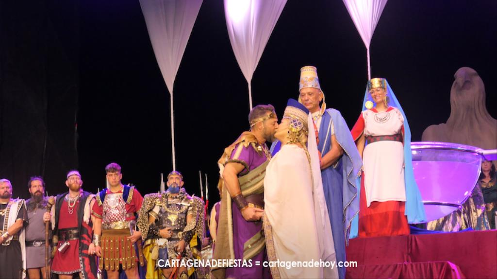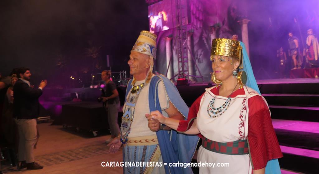 Julio Guillamón y Esther Escolar se estrenaron en el clásico carthaginés de las 'Bodas de Aníbal e Himilce' plasmando en la escena la química que existe entre ellos dentro de una obra que estrenó la dirección de Adrián Quiñones y una escenografía y desarrollo que gustaron al público que abarrotó las localidades, siendo una muy grata sorpresa una danza acuática.