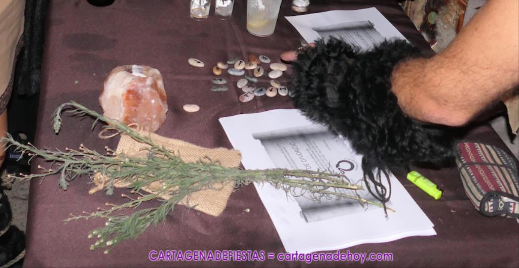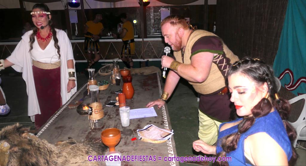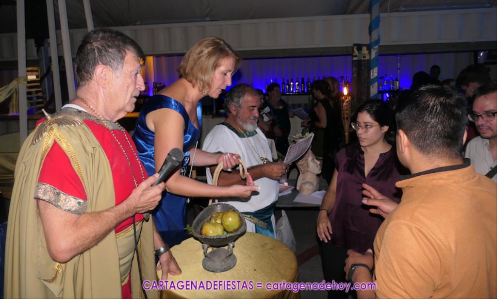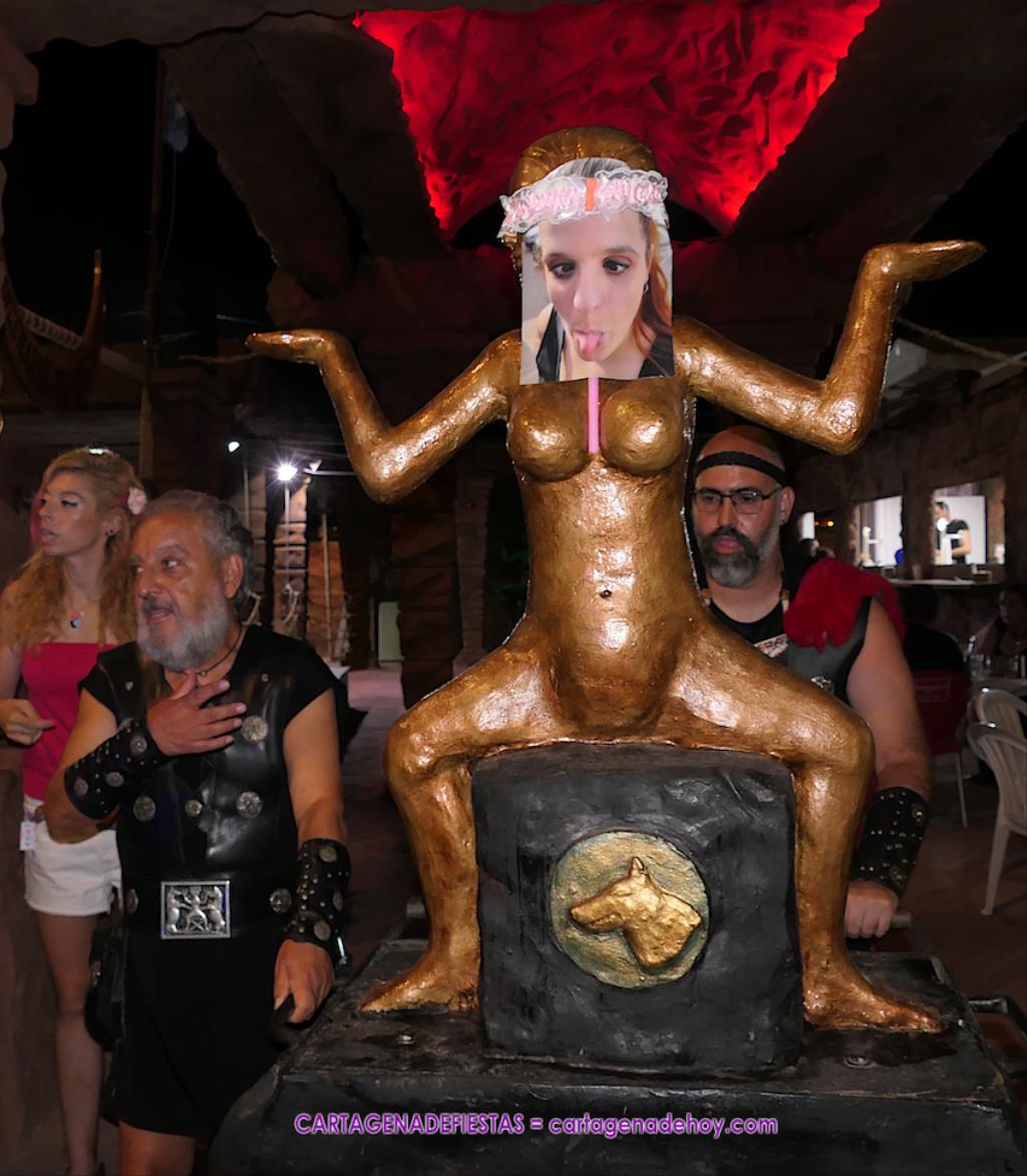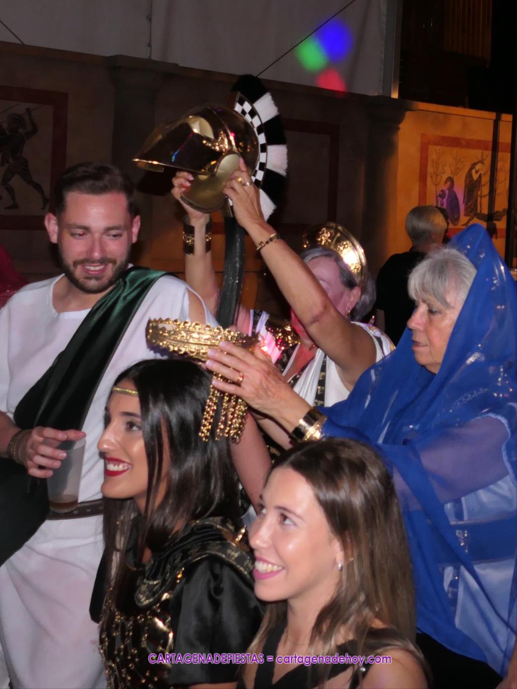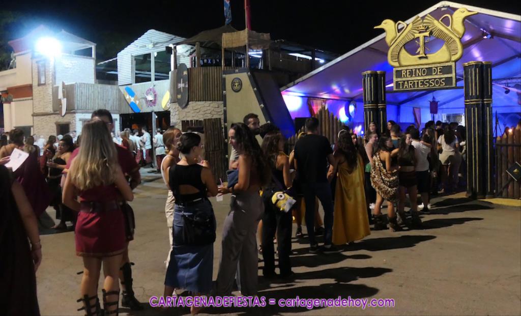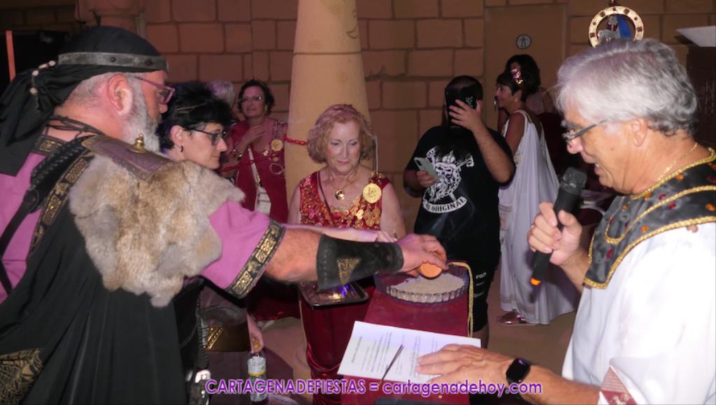 Lo de casarse siempre está de moda en la calle carthaginesa. Empezaron, hace muchas lunas, la tropa de Caballeros e Isis de Carthago (foto superior sobre estas líneas) representando los enlaces al rito púnico y desde la pasada década de este siglo XXIII se ha convertido en un acto de Consejo Carthaginés, siendo casi todos los recintos de la gran aldea los que habilitan esos enlaces de todo tipo, chico-chica, chico-chico, chica-chica, tríos, cuarteros... y lo que se presente. Eso sí, casi todos con solemnidad, como merece un 'sí quiero' de época. Las manos se unen con una cuerda, se vierte sal, se bendice con ramas de romeros, unos toman chupitos, otros cruzan un arco de ramas, los hay que colocan velos, también ponen casos... Es el amor en la calle carthaginesa con festeros de ambos bandos y muchos visitantes en un lunes noche ideal, pues es de las jornadas en la que el campamento no es una macrodiscoteca y se puede disfrutar de la ciudadela de época y de sus moradores.