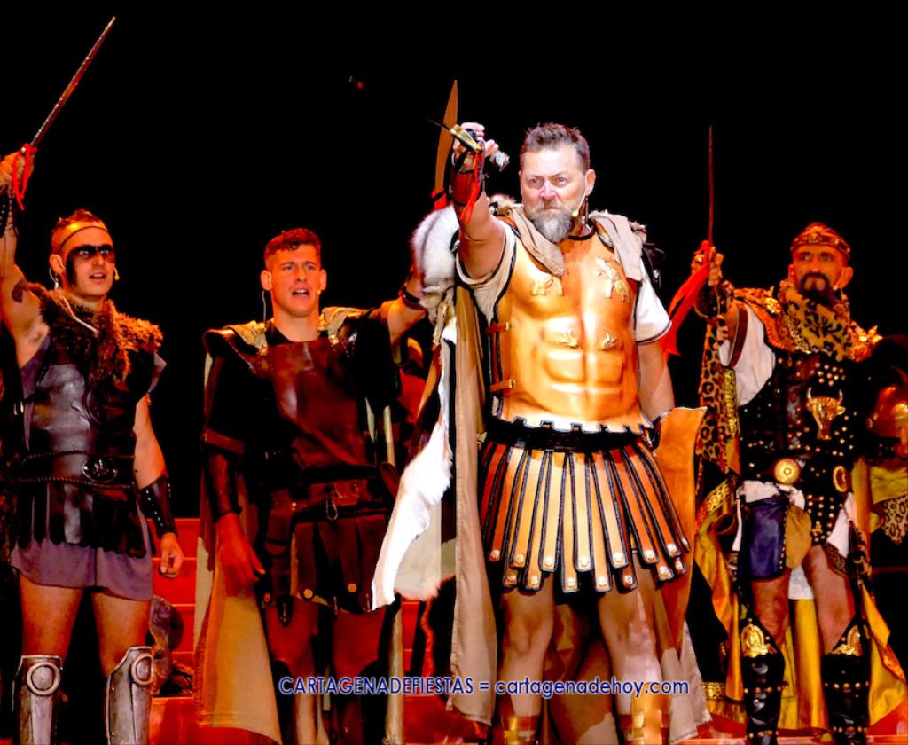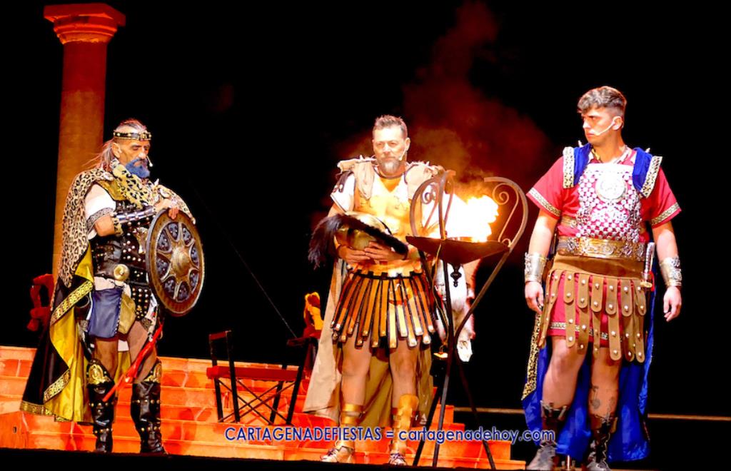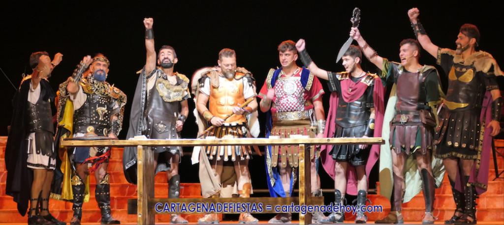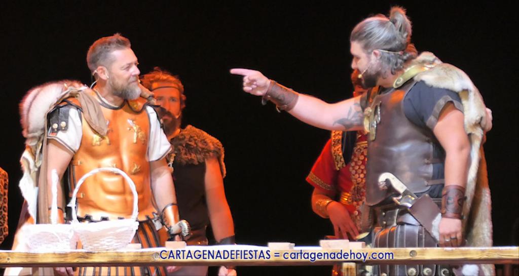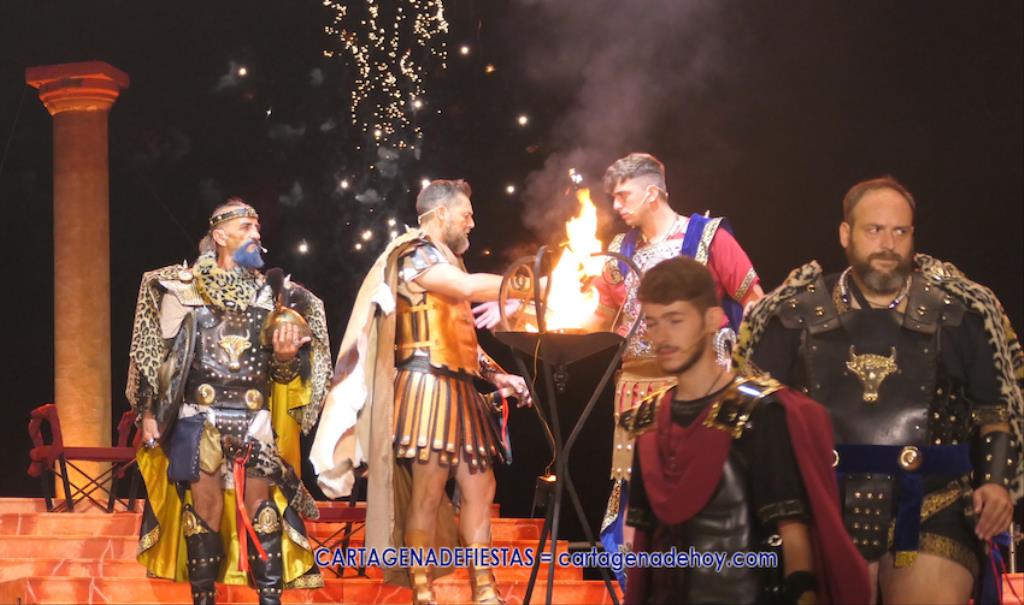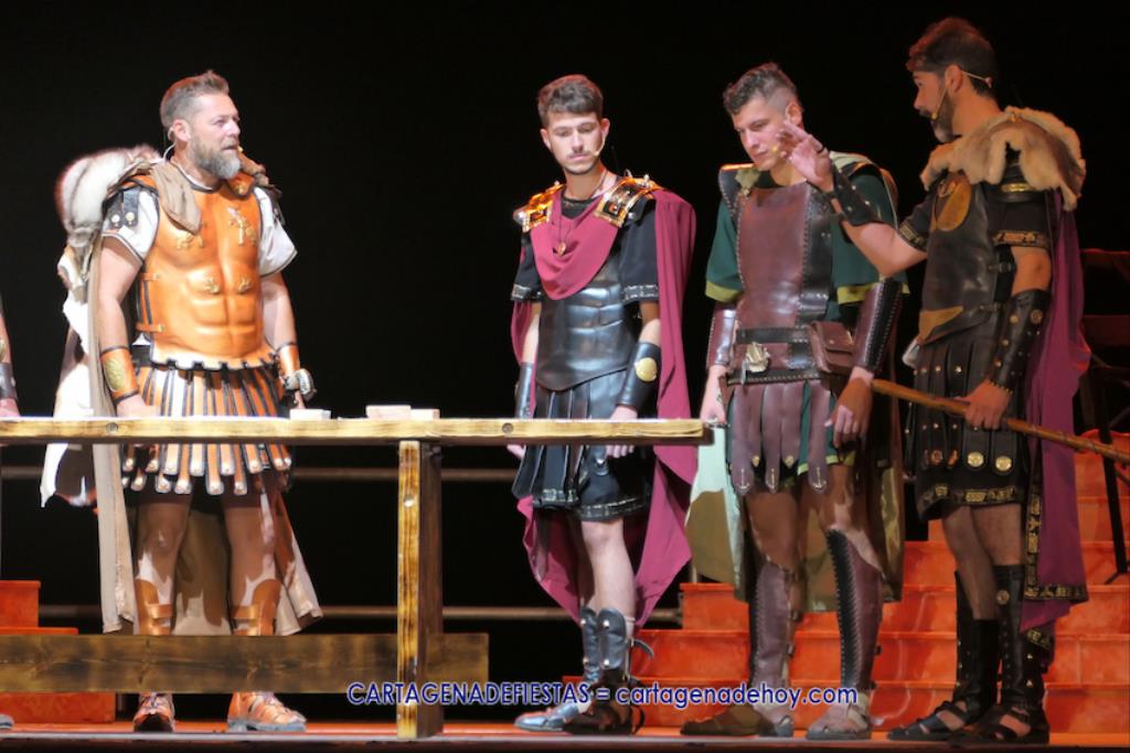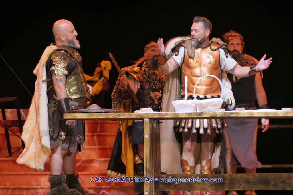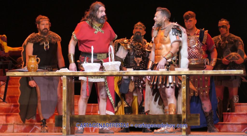El último acto teatral del Consejo Carthaginés relata cómo se gestó la histórica marcha de Aníbal hacia Roma cruzando Los Pirineos y Los Alpes. La obra, dirigida por Jesús Fernández, mantiene su relato base, pero siempre se intenta añadir o variar alguna escena para mantener el interés de todo el público, incluido el que ya la haya visto más veces. En esta ocasión (s.e.u.o.), fue novedad la representación de la devotio final (más larga) y que Aníbal entregue la falcata que simboliza las llaves de Qart-Hadast a Magón Giscón, quien quedó como gobernardo cuando atacó Escipión aprovechando la escasez de defensores en la ciudad íbera. También fue un estreno Julio Guillamón en el papel de Aníbal, gran protagonista del relato. Factor no esperado fue el viento, que molestó y apagó algún pebetero, pero es que Eolo no se quiere ir este año del escenario de puerto.