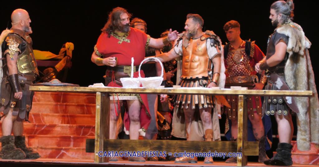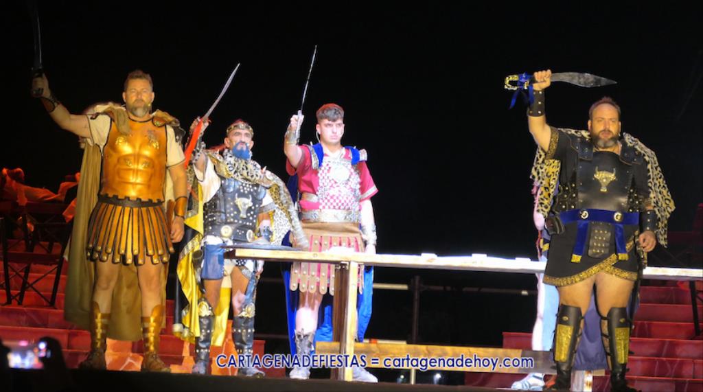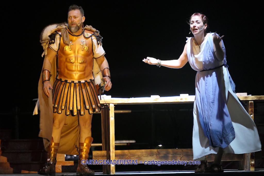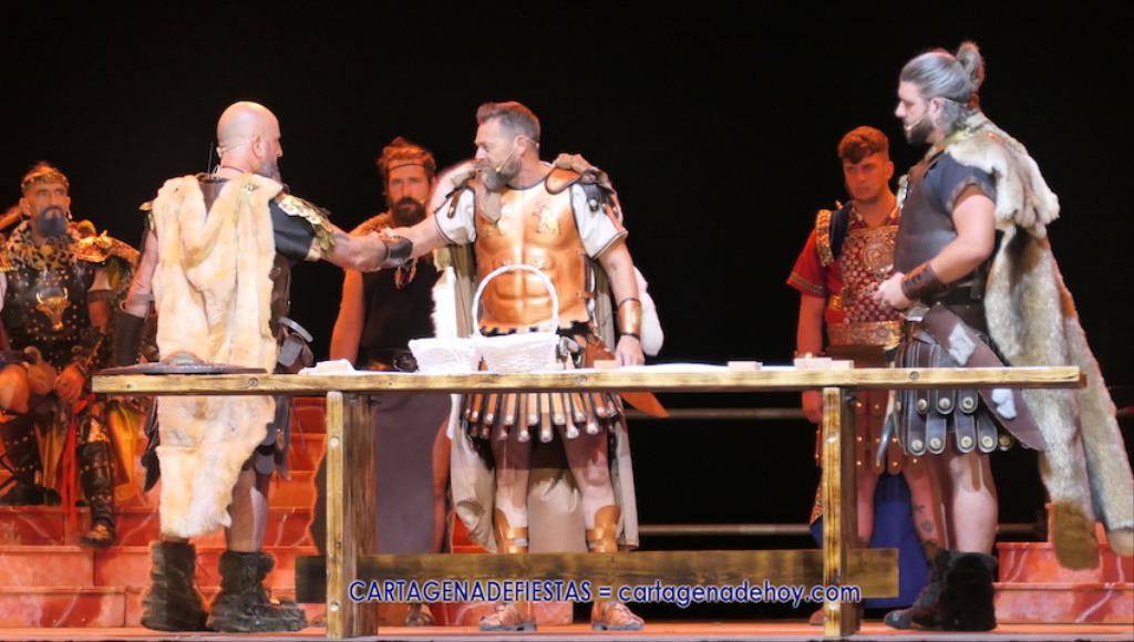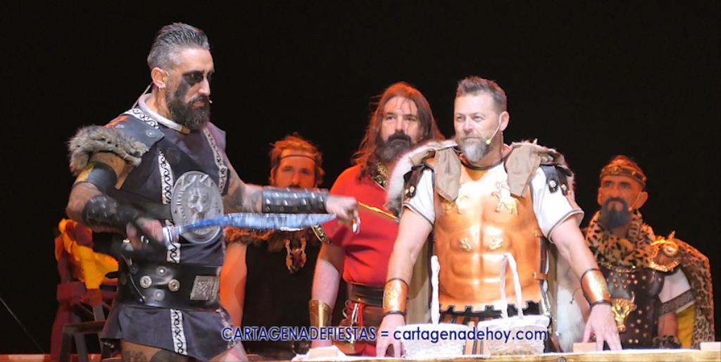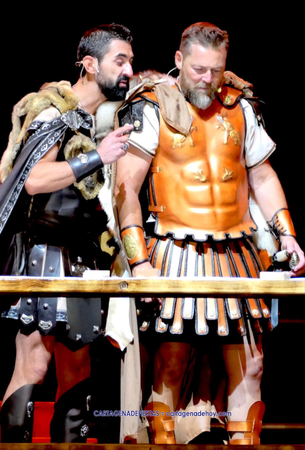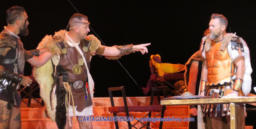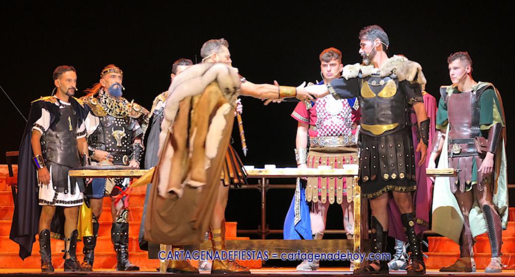 El último acto teatral del Consejo Carthaginés relata cómo se gestó la histórica marcha de Aníbal hacia Roma cruzando Los Pirineos y Los Alpes. La obra, dirigida por Jesús Fernández, mantiene su relato base, pero siempre se intenta añadir o variar alguna escena para mantener el interés de todo el público, incluido el que ya la haya visto más veces. En esta ocasión (s.e.u.o.), fue novedad la representación de la devotio final (más larga) y que Aníbal entregue la falcata que simboliza las llaves de Qart-Hadast a Magón Giscón, quien quedó como gobernardo cuando atacó Escipión aprovechando la escasez de defensores en la ciudad íbera. También fue un estreno Julio Guillamón en el papel de Aníbal, gran protagonista del relato. Factor no esperado fue el viento, que molestó y apagó algún pebetero, pero es que Eolo no se quiere ir este año del escenario de puerto.