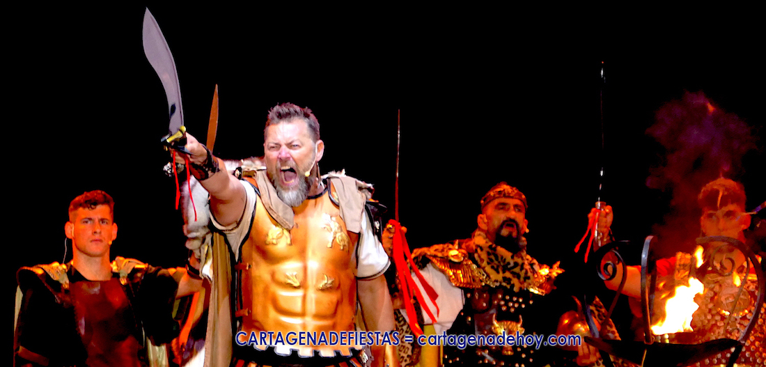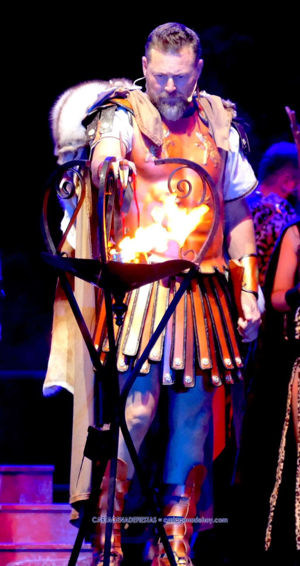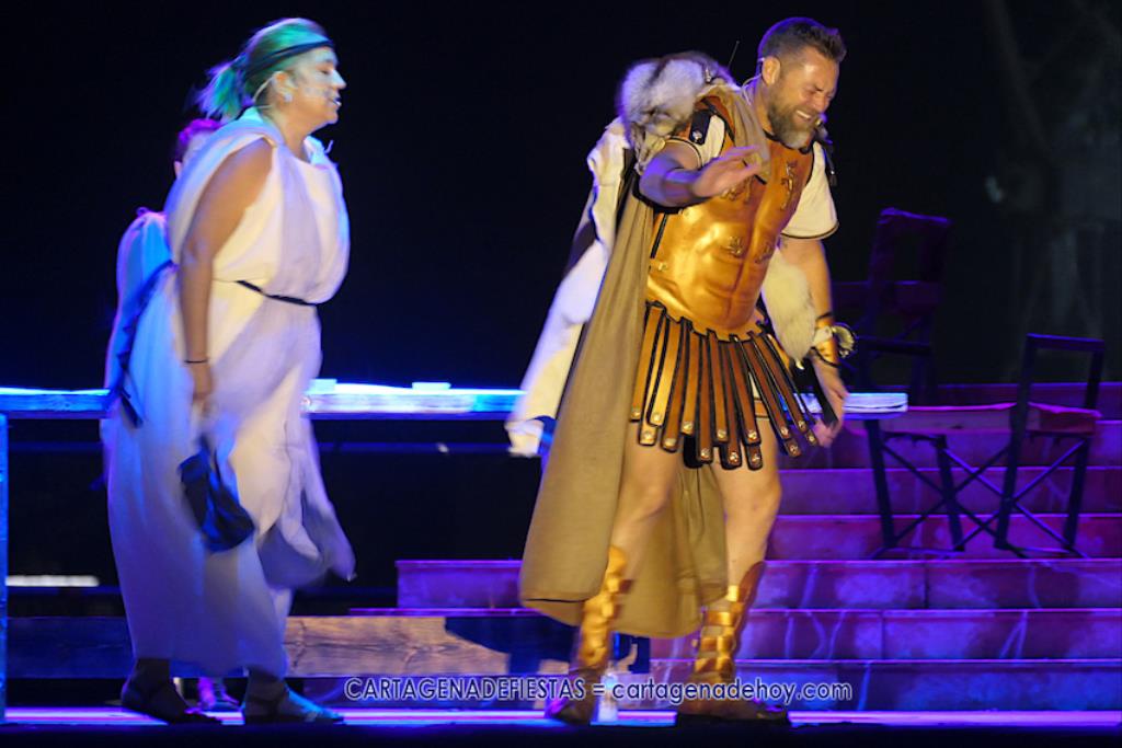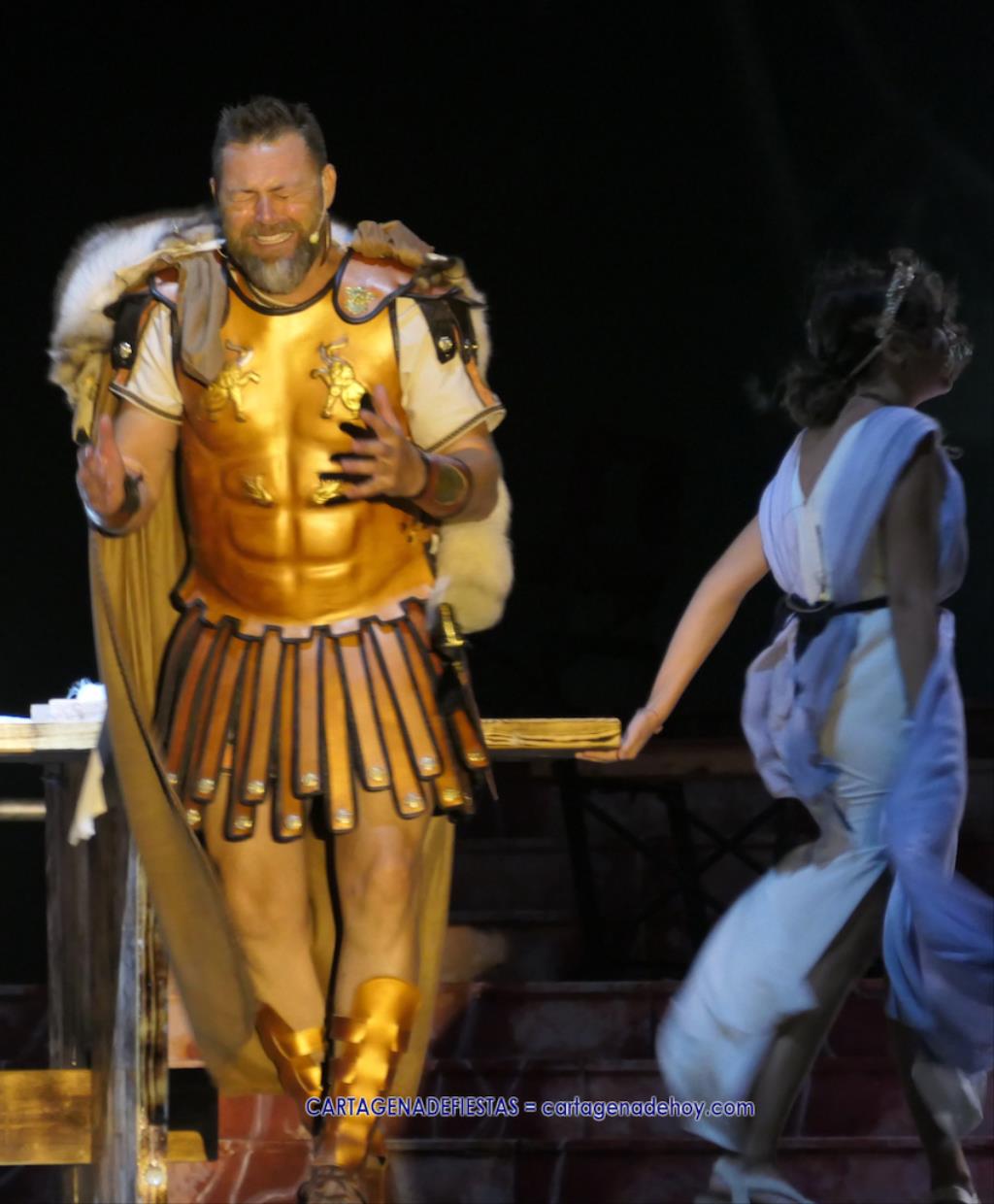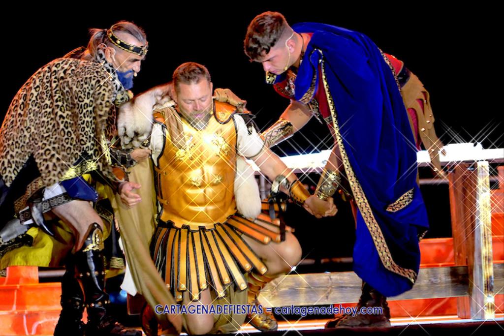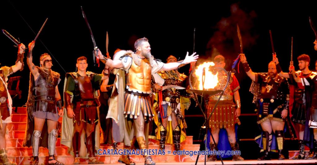El último acto teatral del Consejo Carthaginés relata cómo se gestó la histórica marcha de Aníbal hacia Roma cruzando Los Pirineos y Los Alpes. La obra, dirigida por Jesús Fernández, mantiene su relato base, pero siempre se intenta añadir o variar alguna escena para mantener el interés de todo el público, incluido el que ya la haya visto más veces. En esta ocasión (s.e.u.o.), fue novedad la representación de la devotio final (más larga) y que Aníbal entregue la falcata que simboliza las llaves de Qart-Hadast a Magón Giscón, quien quedó como gobernardo cuando atacó Escipión aprovechando la escasez de defensores en la ciudad íbera. También fue un estreno Julio Guillamón en el papel de Aníbal, gran protagonista del relato. Factor no esperado fue el viento, que molestó y apagó algún pebetero, pero es que Eolo no se quiere ir este año del escenario de puerto.