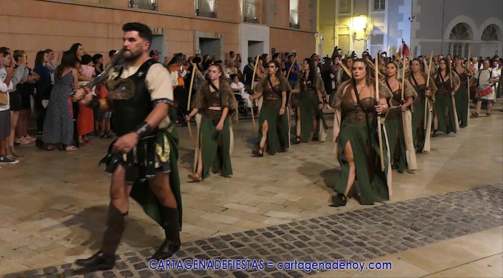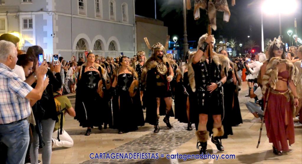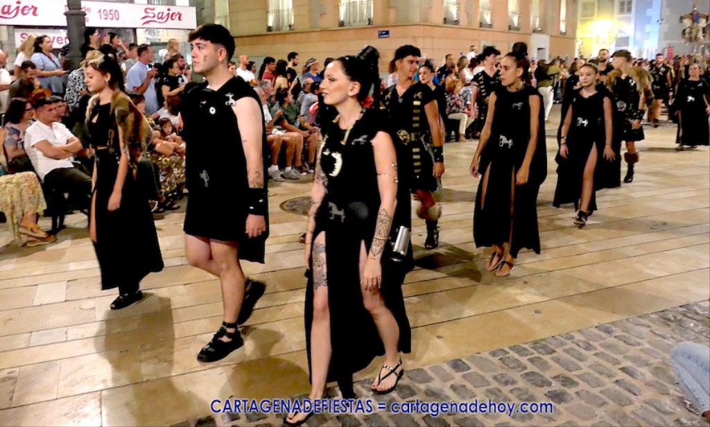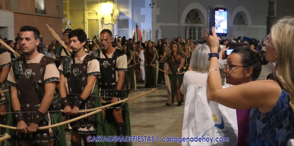 Tras el acto del ‘Desembarco y contratación de mercenarios’, en la que el general cartaginés monta un gran ejército para atacar a su gran enemigo, tuvo lugar el desfile de los grupos cartageneros púnicos hacia el campamento, en la representación de la marcha de antaño hacia Roma.