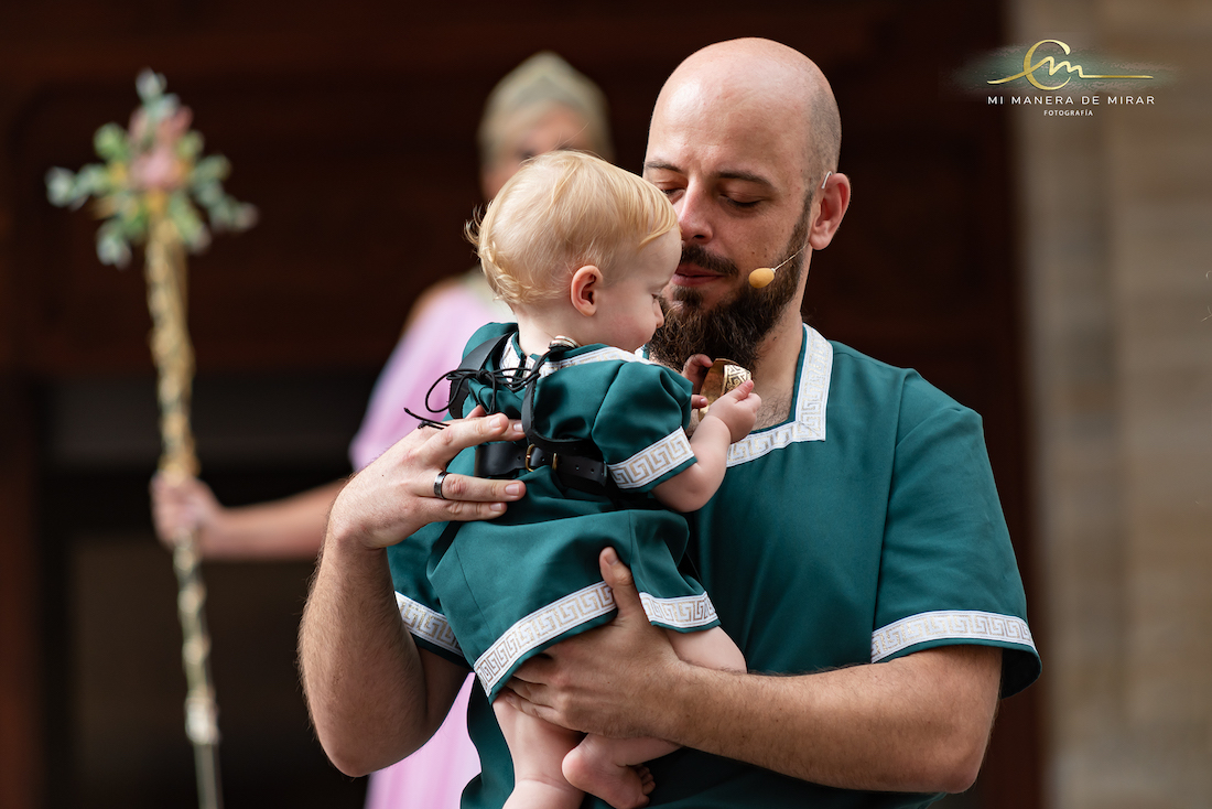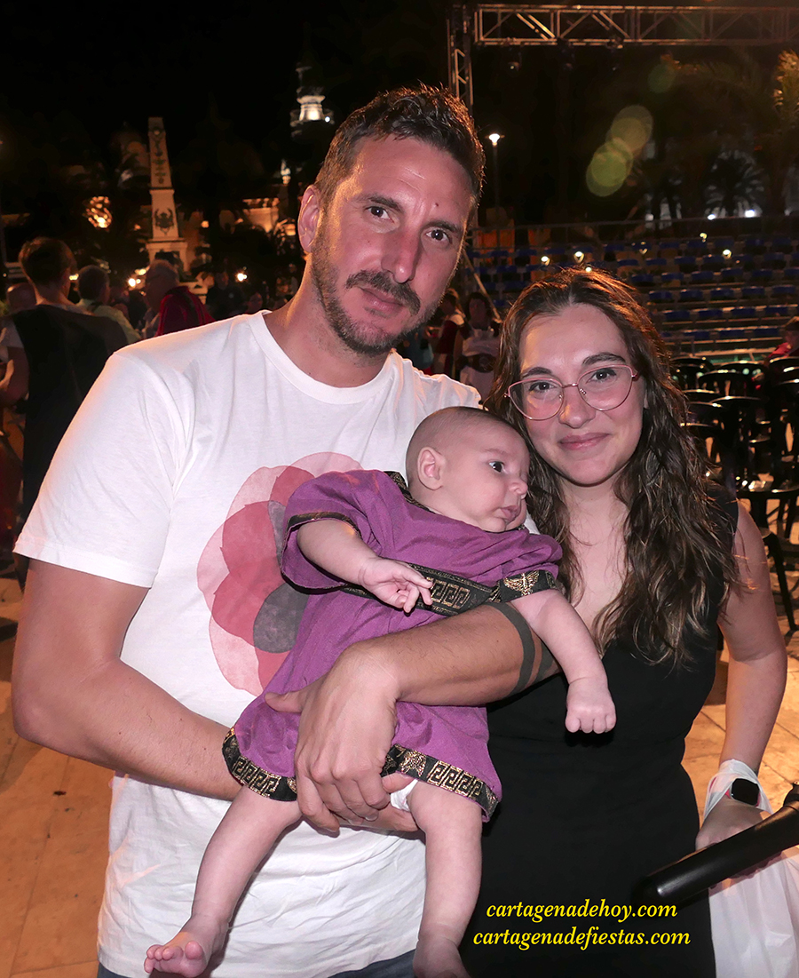 Un bebé ya festero con sus padres