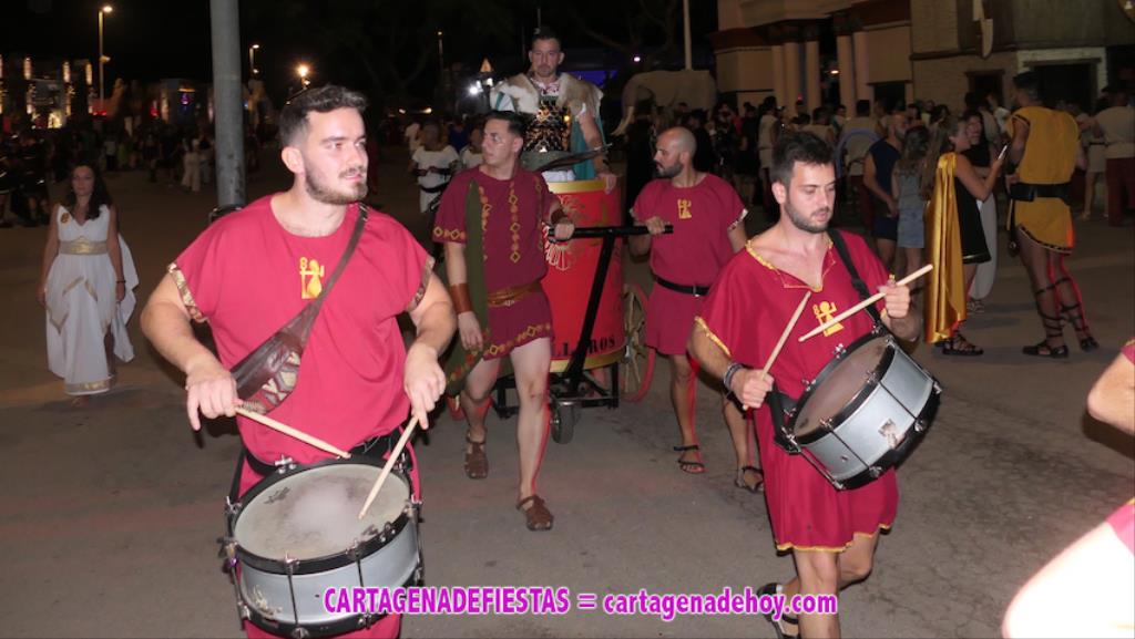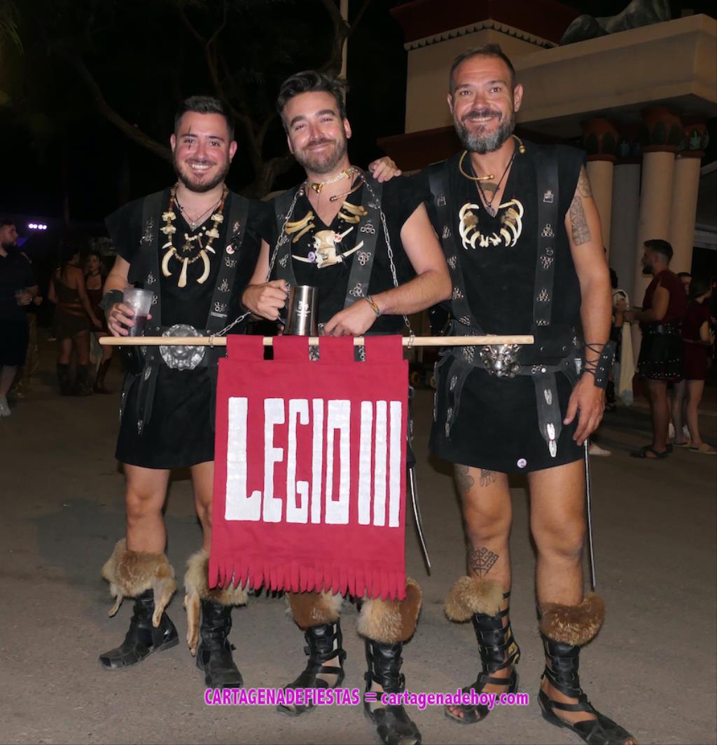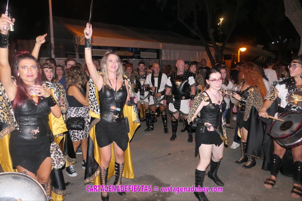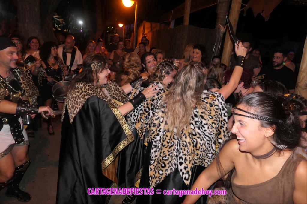 Raptos. Hay festeros que son secuestrados y objetos que se roban. La bandera de la Legio III ha sido el símbolo que más ha ‘viajado’ estas madrugadas. La vemos con Uxama y con Indiketes. También han funcionado las jaulas por las calles de la gran aldea, como la que se observa que llevan los tartesos.