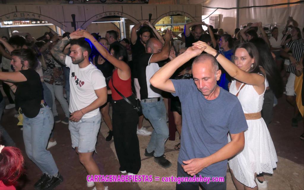 Bailes. Una foto es bailando música actual en Pueblo de Massalia y varias corresponen a noche de la bachata de Quart-Hadast.