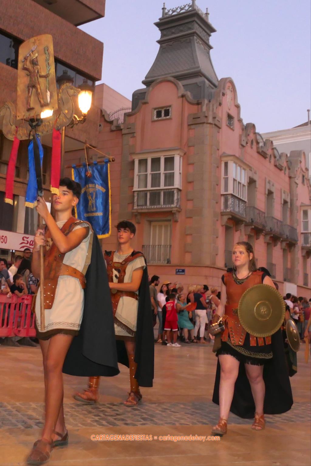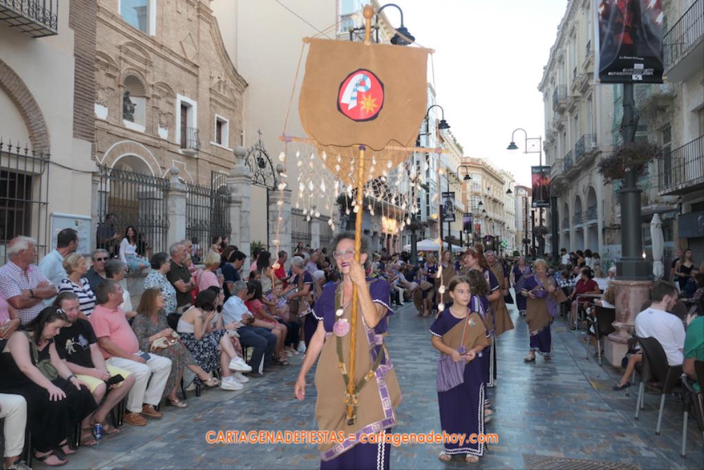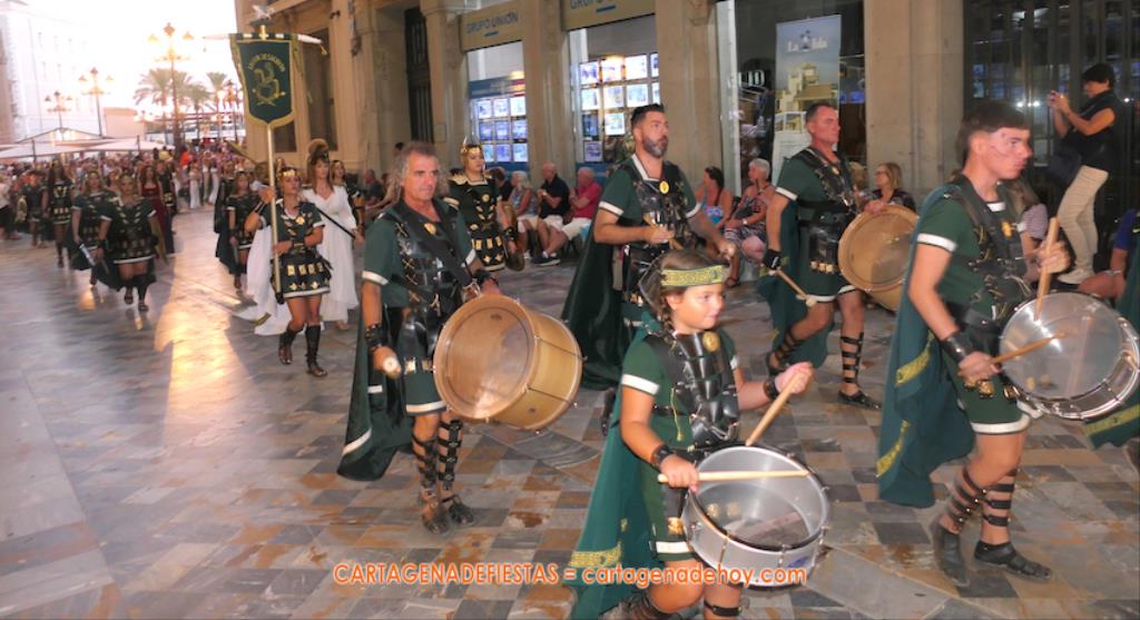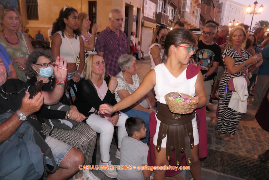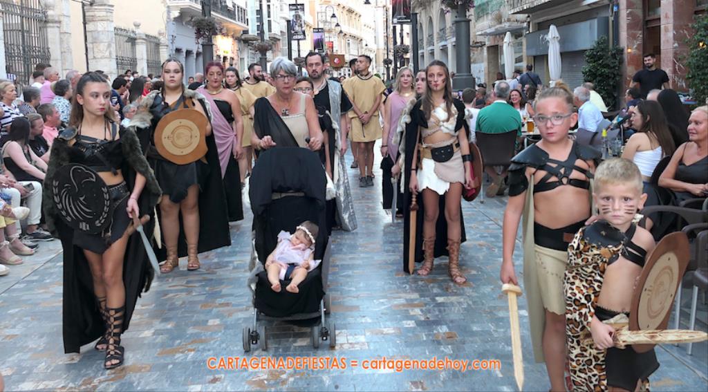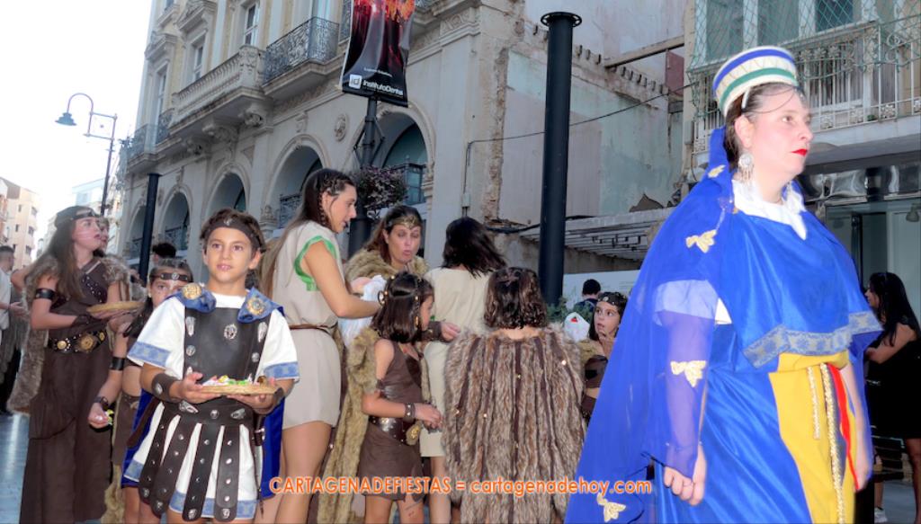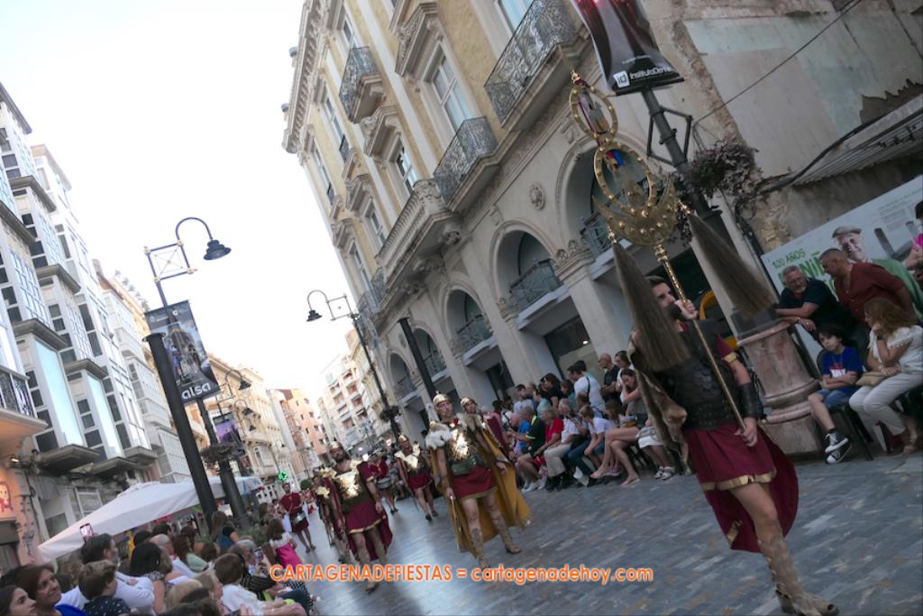 La marcha fue brillante, con púnicos y águilas salpicados en el contingente y con mucha voluntad por agradar, además de obsequiar a los espectadores con vinos, caramelos o monedas de chocolate. Los epicentros de cada grupo fueron los personajes de Aníbal-Himilce y Escipión-Emilia Paula en versiones adulta e infantil.