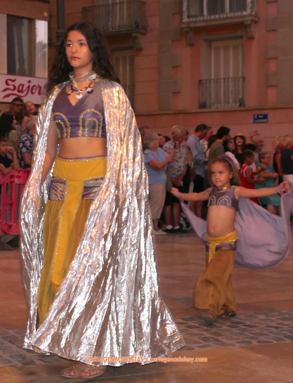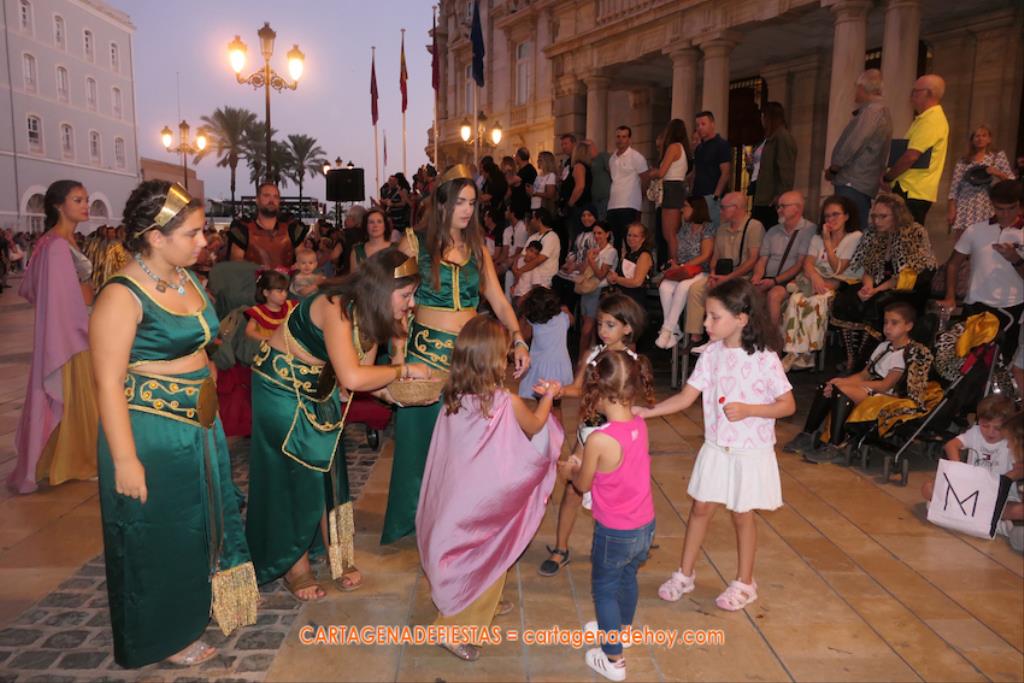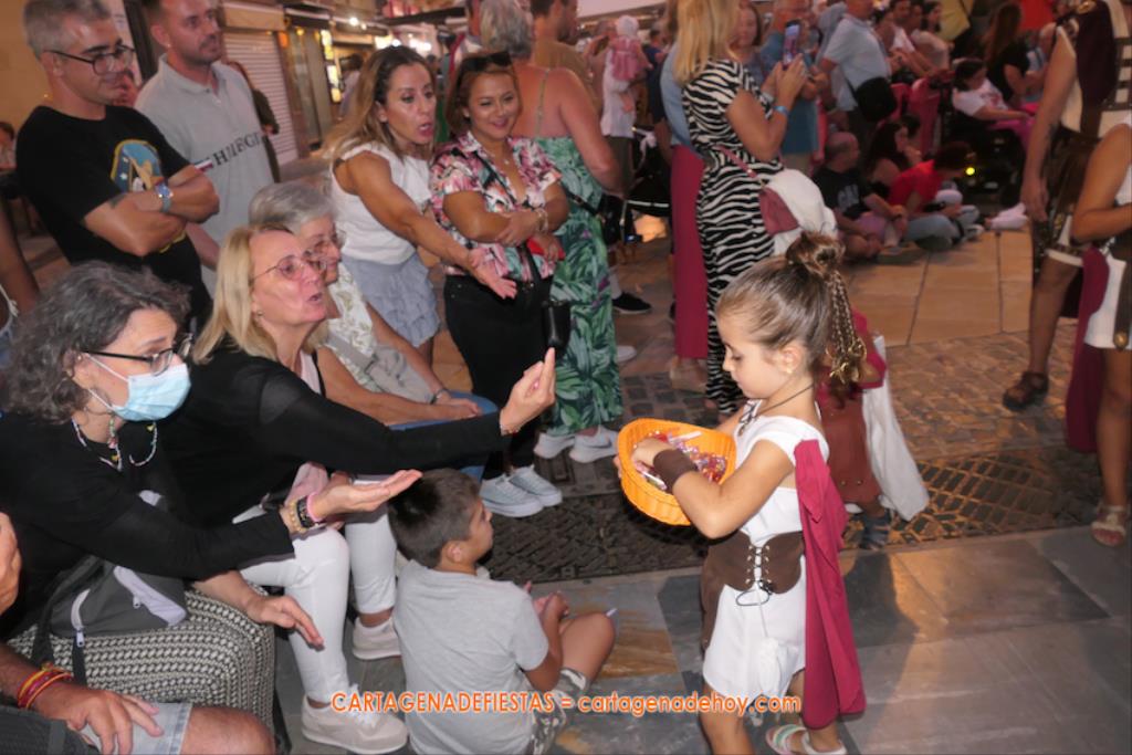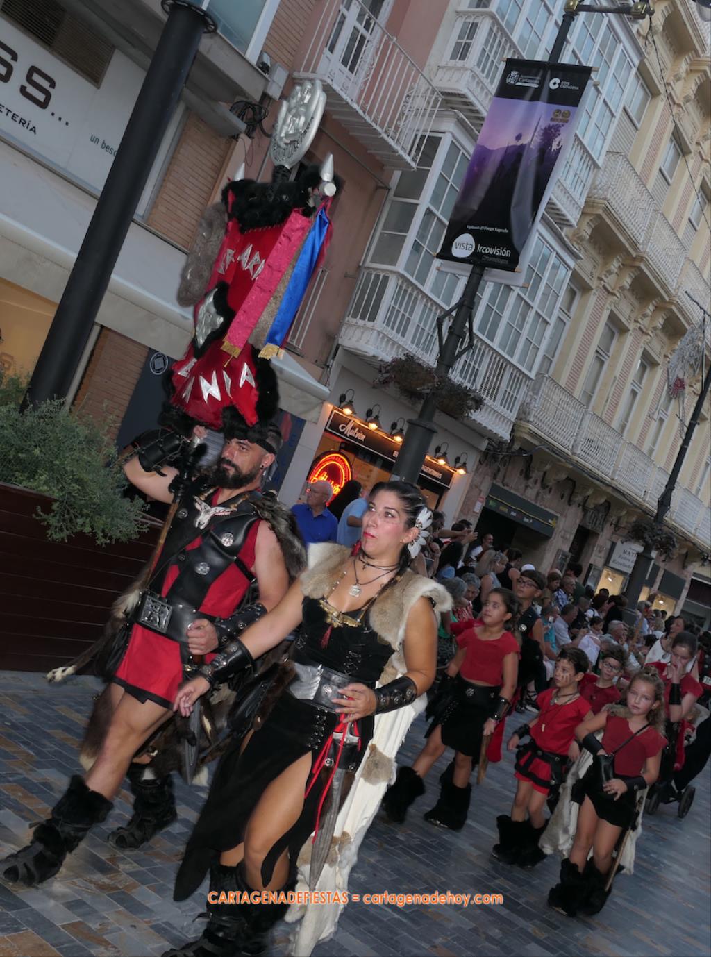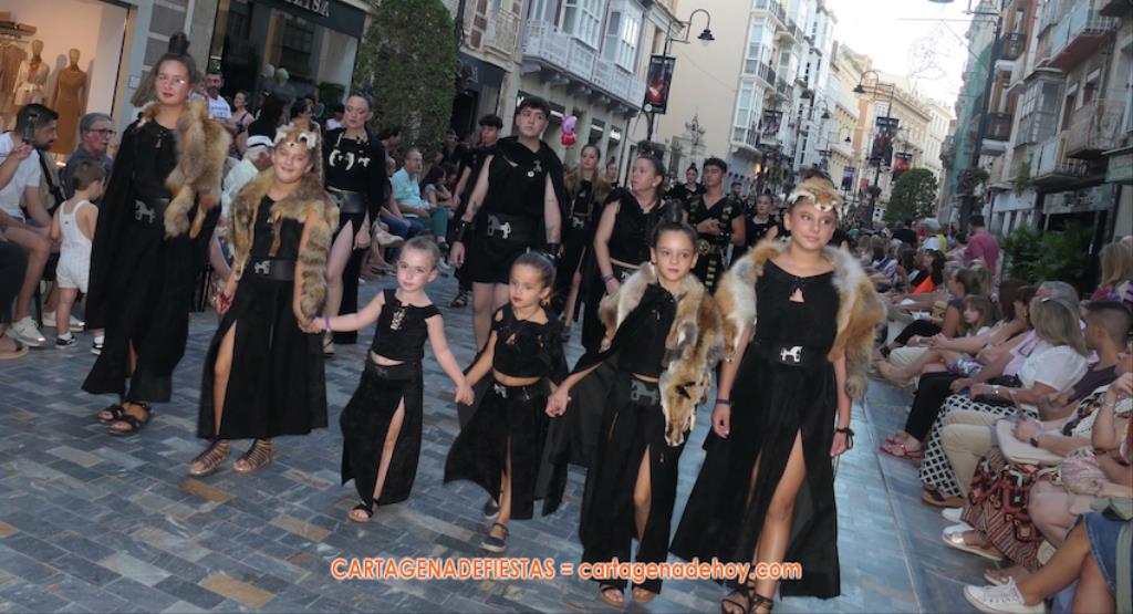 La marcha fue brillante, con púnicos y águilas salpicados en el contingente y con mucha voluntad por agradar, además de obsequiar a los espectadores con vinos, caramelos o monedas de chocolate. Los epicentros de cada grupo fueron los personajes de Aníbal-Himilce y Escipión-Emilia Paula en versiones adulta e infantil.