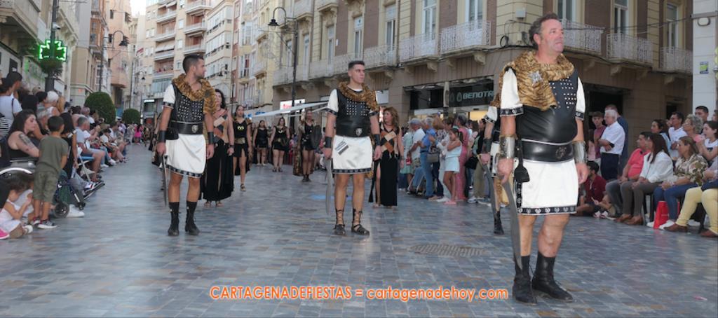 Si Carthagineses y Romanos reúne a más de seis mil personas vestidas de época, fácilmente el gran desfile general tuvo unos cuatro mil entre guerreros, legionarios, dioses, sacerdotes, sacerdotisas, guardianes, civiles, comerciantes y un largo etcétera, a los que hay que suma más de doscientos festeros llegados de las fiestas de Moros y Cristianos de Alicante, que abrieron la marcha, y de las fiestas Íbero Romanas de Cástulo.