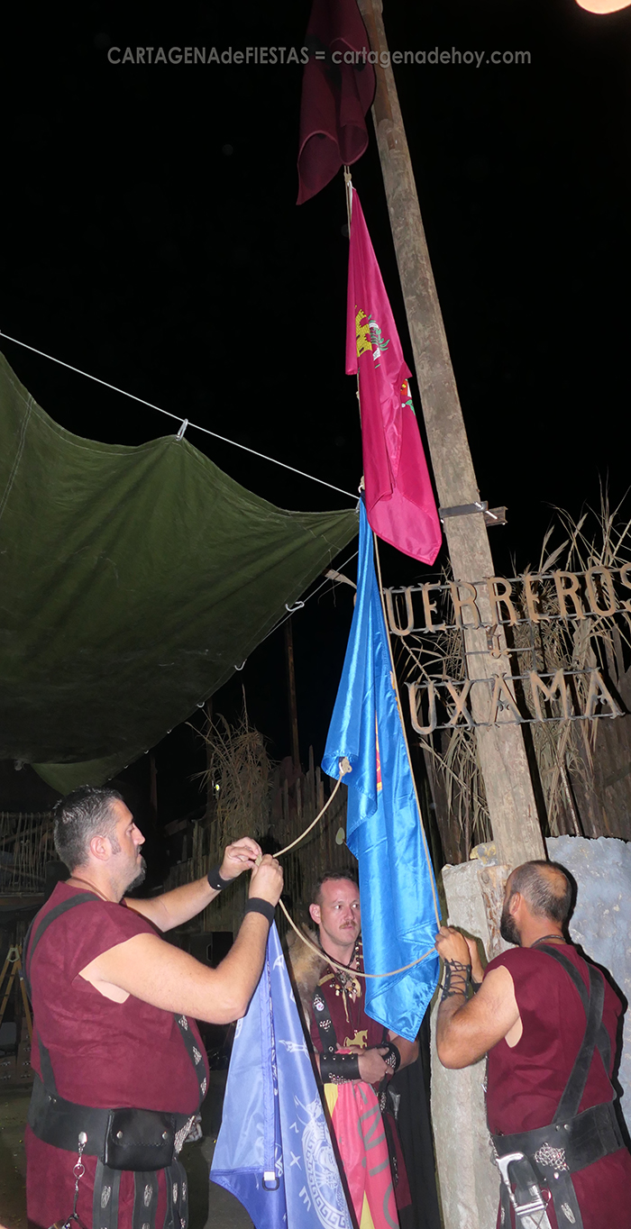 Arriado de las banderas de la tropa y de Cartagena en el cierre de campamento