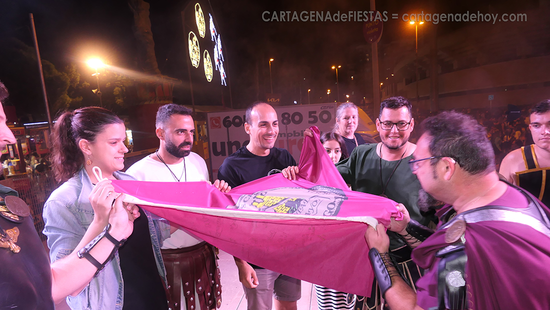 El Estado Mayor Romano y la Hermandad de la Bona Dea quisieron poner el broche a los dos años en que Javier Argudo y María Montserrat Robira han encarnado los personajes de Escipión y Emilia Paula obsequiándoles con una bandera del colectivo en señal de reconocimiento y gratitud, la cual fue entregada tras el apagado del fuego sagrado. Antes, cuando empezaron las fiestas, el general lució una capa que también le regalaron y en la que figuraban los nombres de los integrantes del Estado Mayor.