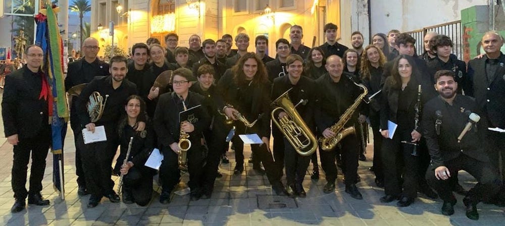 El grupo de festeros cartageneros contó con el acompañamiento musical de la banda de educación y descanso 'Diego García' y de la Agrupación Musical La Unión.