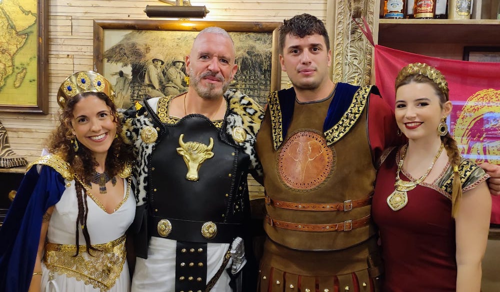 Las fotos corresponden al encuentro celebrado este año en el restaurante ‘El paso de los elefantes’ de San Antón-Urbanización Mediterráneo con los tres festeros que representan a los hijos de ‘El león de Cartago’, junto a la presidenta del Consejo Carthaginés, Lola Pérez, y la presidenta de Torpas de Aníbal, Carmen Pareja, entre otros.