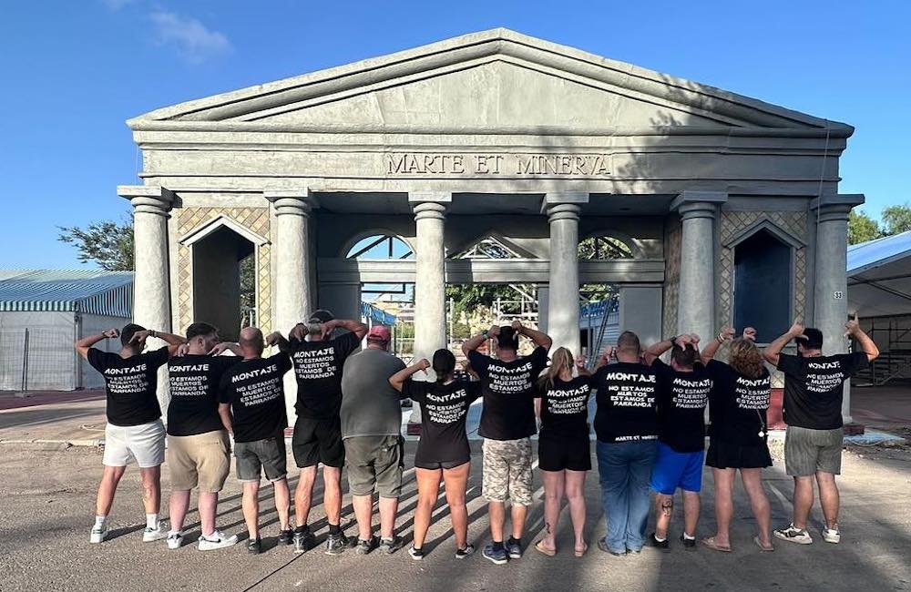 La legión de Marte y Minerva ya tiene levantada la fachada de su templo, que es el punto más elevado de los campamentos de las legiones. Las fotos muestran al equipo de montaje en estos días previos al inicio de Carthagineses y Romanos.