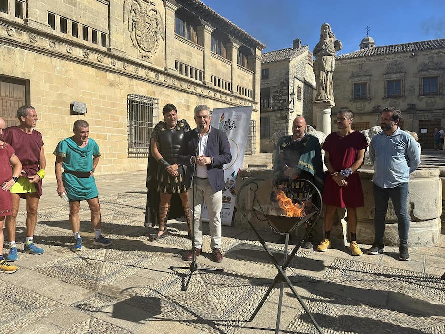 Tras recorrer los primeros 31 kilómetros, Baeza ha sido la población donde el fuego sagrado de Carthagineses y Romanos ha hecho su primera escala tras salir el sábado de Linares. La comitiva cartagenera fue recibida por el concejal de Turismo y Promoción, José Antonio Jiménez, en la plaza del Pópulo.