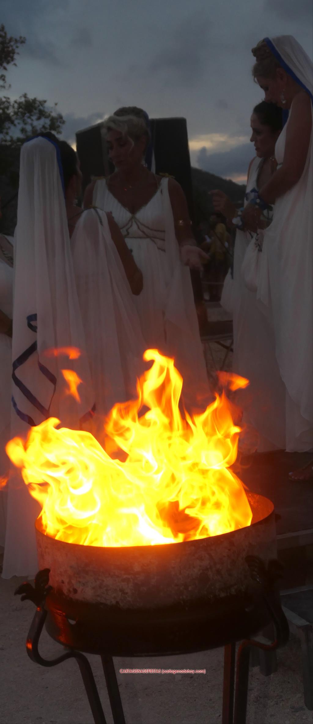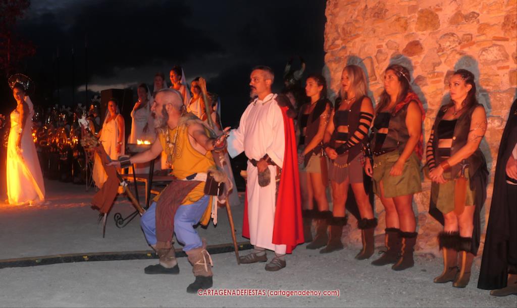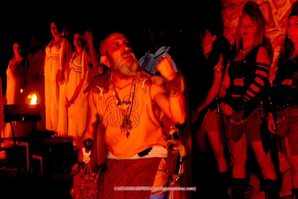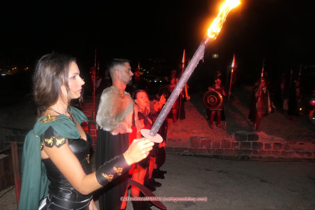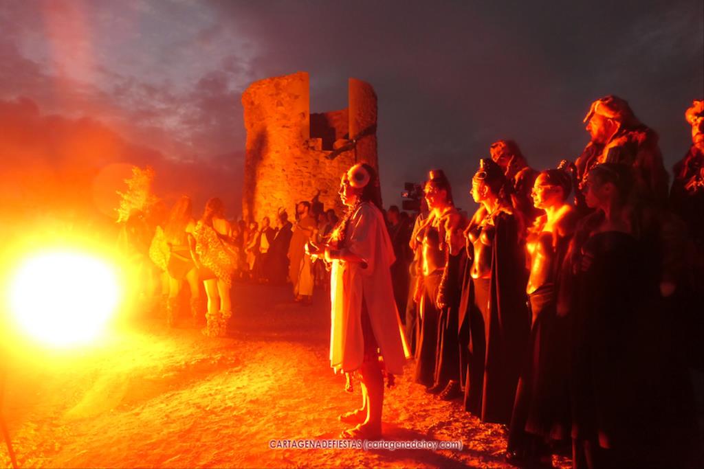 Hasta llegar a ese momento, hay que reseñar que se llevó a cabo un acto teatral previo que protagonizaron una vesta, dos druidas y el propetor romano. Fue novedad con respecto a años anteriores y también la dirección con el regreso de Marcial Góngora, además del pebetero, que pasó de estar en un lateral a ubicarse muy cerca del molino. Esa llama es la que la tradición marca que estará encendida mientras duran las fiestas.