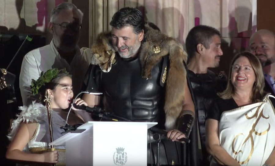 José Antonio Meca está viviendo una fiestas muy especiales, ya que son las últimas como presidente de la Federación de Tropas y Legiones. Esto ha motivado que quiera compartir los momentos de este 'Annus XXXV' con sus dos hijos, quienes le acompañaron con el fuego sagrado y después en el balcón del Palacio Consistorial, donde también tuvieron la oportunidad de hablar.