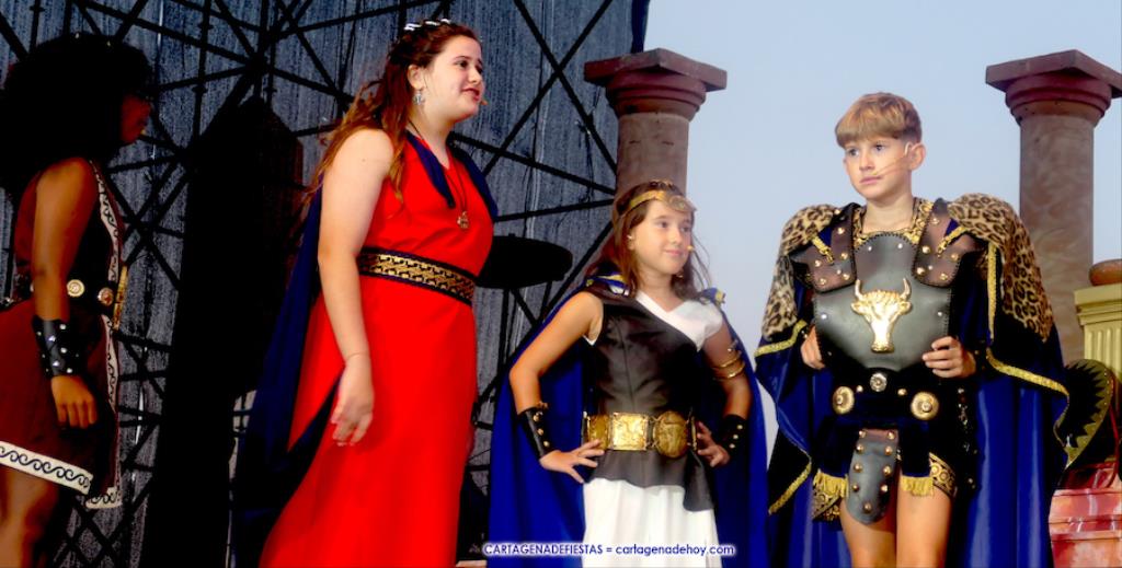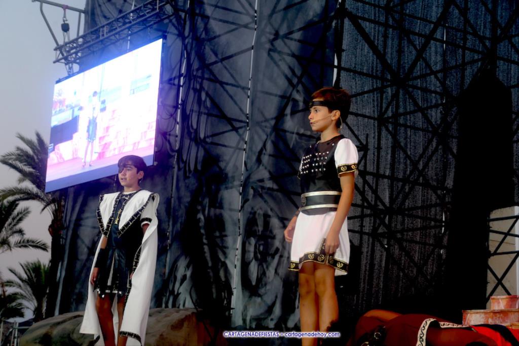Los personajes infantiles del Consejo Carthaginés cautivaron al público con la puesta en escena de 'Tras las huellas de Cartago' y 'El pacto de Himilce', demostrando que en Carthagineses y Romanos el relevo generacional de los actores festeros está garantizado.
