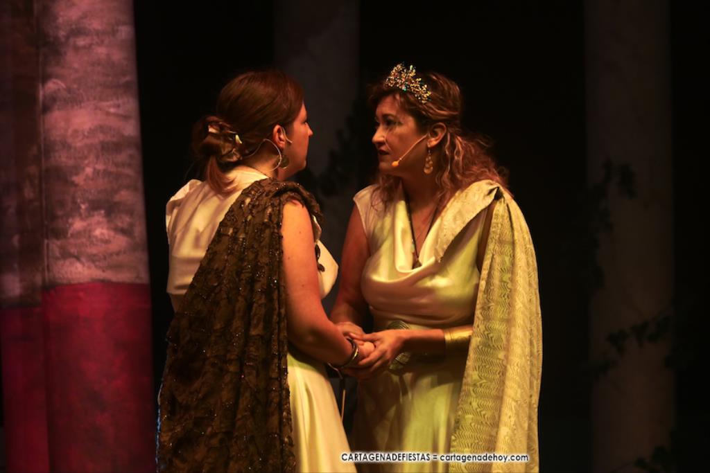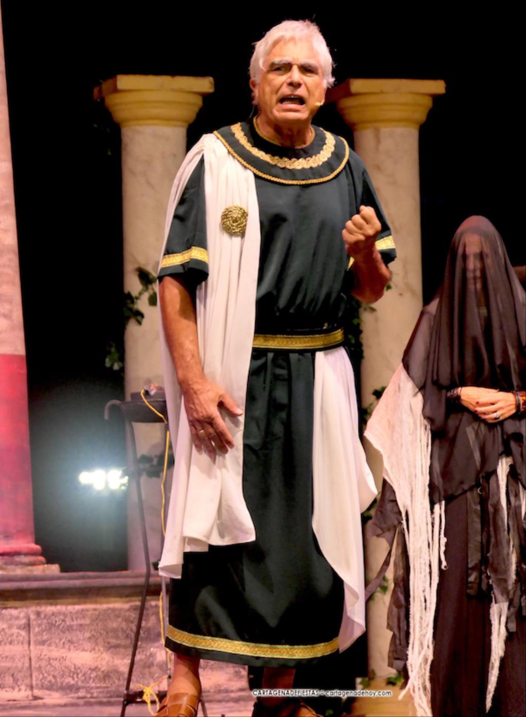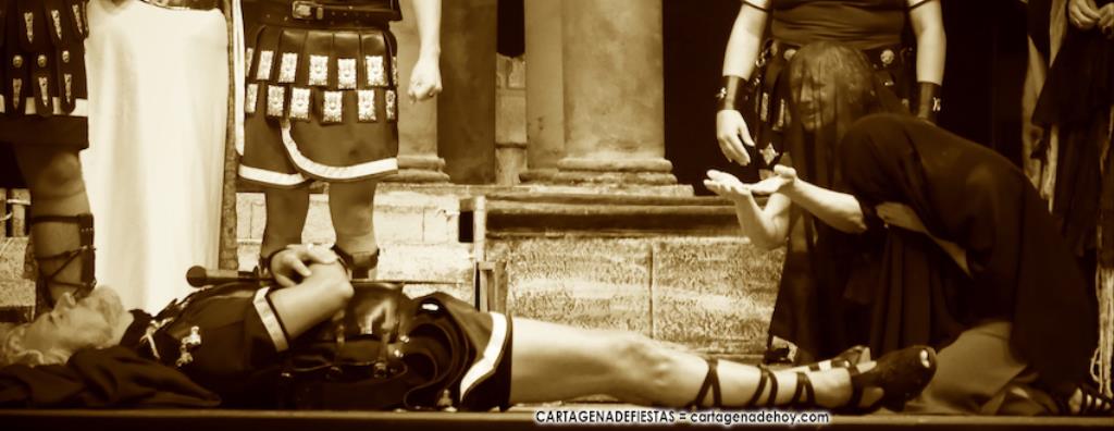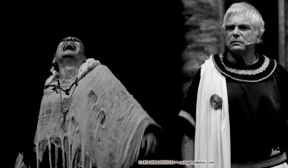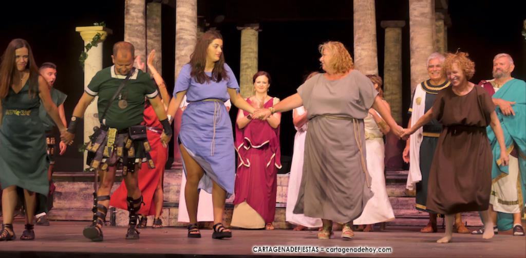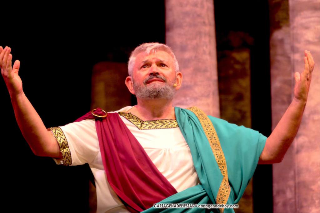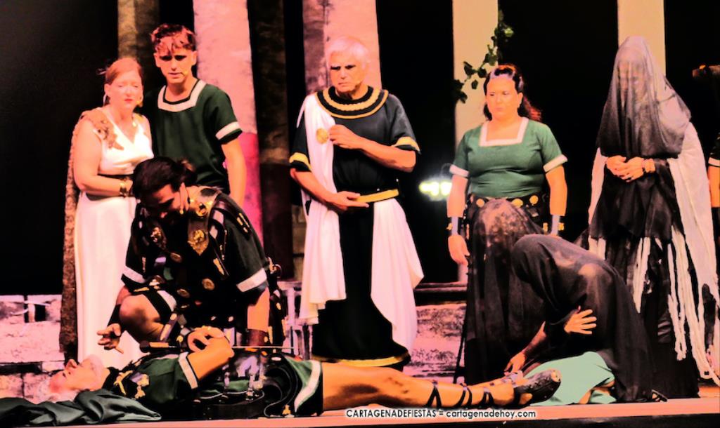 La IA ya está en las históricas fiestas de Cartagena. Su primer acto de presencia (s.e.u.o.), lo ha hecho a través de la representación de la 'Destrucción de Sagunto' con la rockera canción que acompañó al saludo de los actores tras acabar la puesta en escena, que en esta ocasión tuvo, por primera vez también, a Juanjo Núñez con la 'batuta' de dirección, además de interpretar a Valerio (antes Teucro), que este año fue el último legionario en morir.