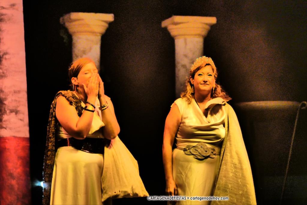 Y no faltó, por segundo año, la alegoría de la destrucción de la ciudad en tétrica representación a cargo de Marisol Ferreira. "Bien y mal, la muerte llegará; bien y mal, el silencio reinará", canta. "¿Mereció la pena Sagunto?", pregunta. "Mereció la pena", le responderá instantes antes de su combate final Valerio.