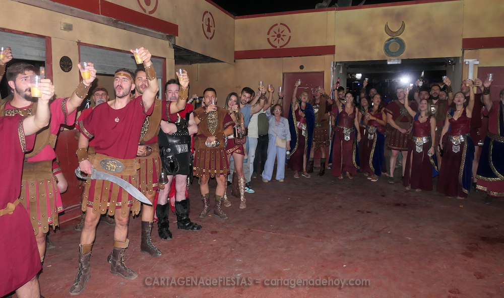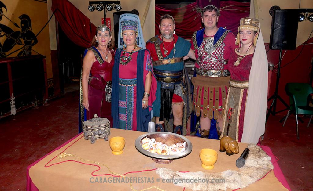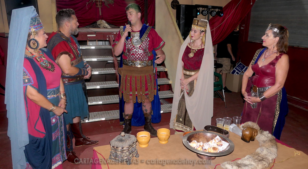 Más tarde, la pareja fue recibida en el recinto de Tropas de Aníbal, su grupo escolta, en un acto que fue presentado por la presidenta, Carmen Pareja, y por los personajes de este colectivo, tomando después la palabra Himilce y Aníbal, quienes dieron su gratitud a los integrantes de la tropa por el cariño y calidez que le han dado (y están dando) en los dos años como personajes principales del bando púnico. Un brindis y una dulce degustación completó la velada.