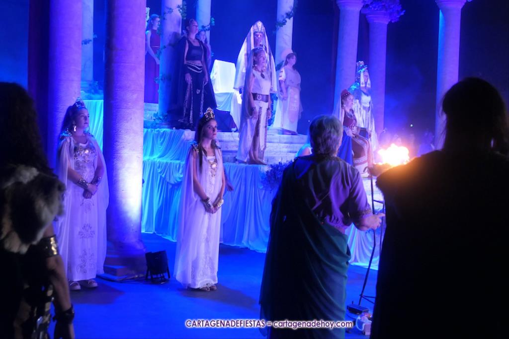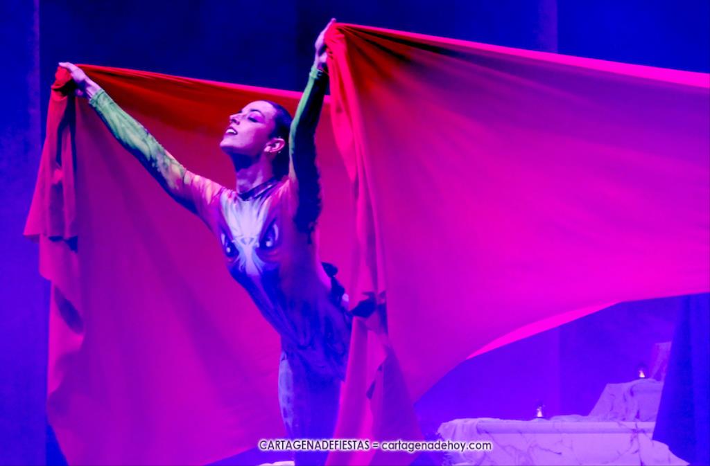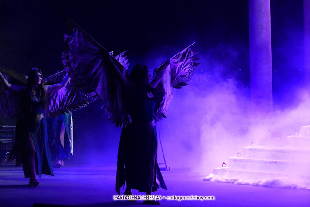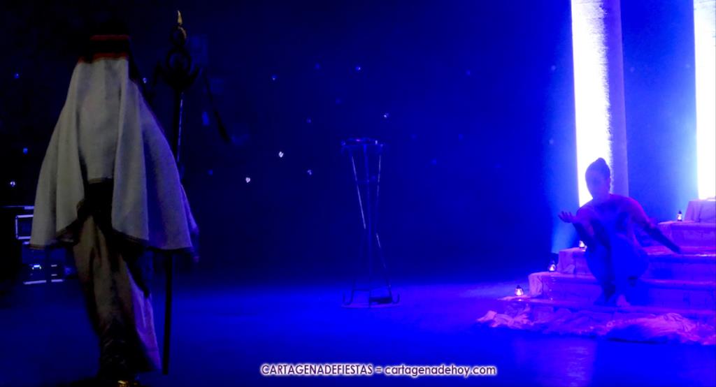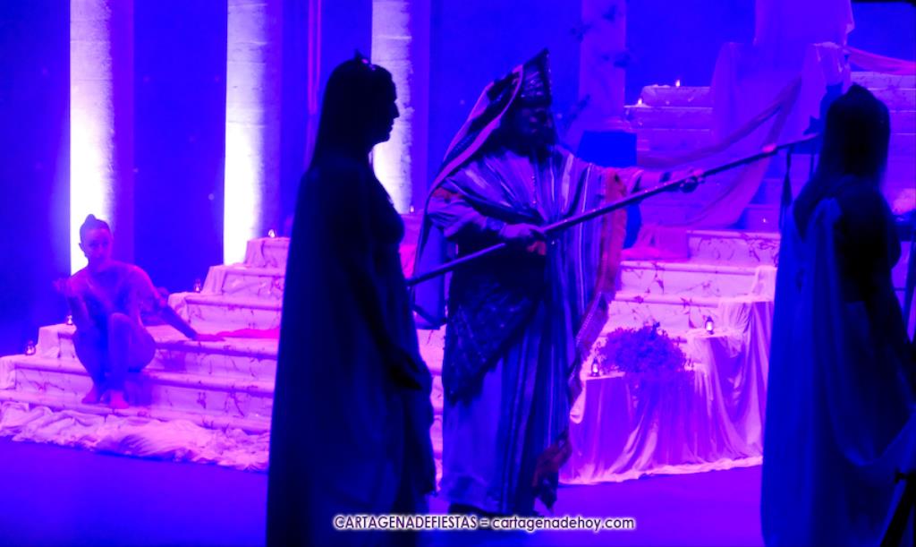 Una elástica danzarina rodeada por las sacerdotisas de Baal-Hammon son las primeras escenas que llegan a un completado graderío del auditorio más elevado de ‘La Trimilenaria’, el lugar donde más luce esta obra de apenas cuarenta minutos que ha vuelto a dirigir Adrián Quiñones.